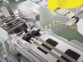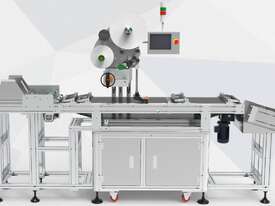 Ideal for cartons, bags, pouches, and flat board products, the system feeds items individually using high-friction belting, applies labels with servo precision, and collects finished items ready for packing or dispatch.