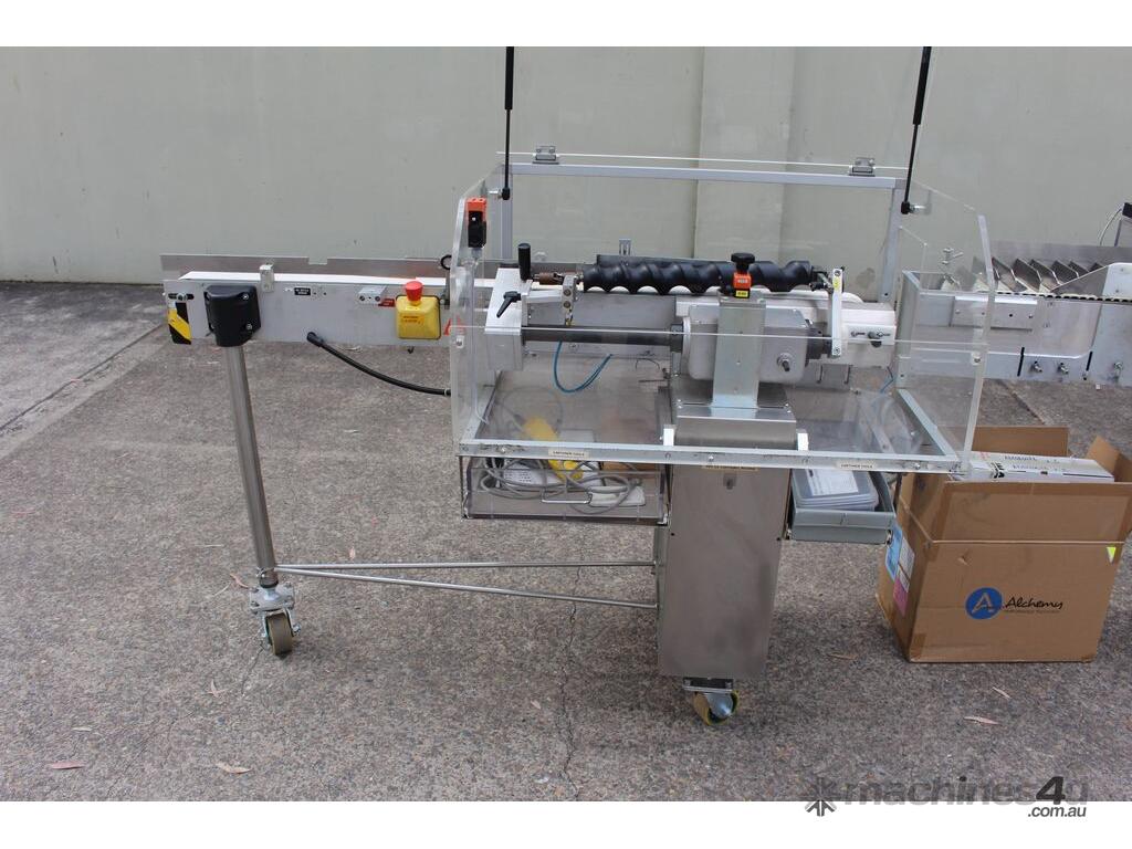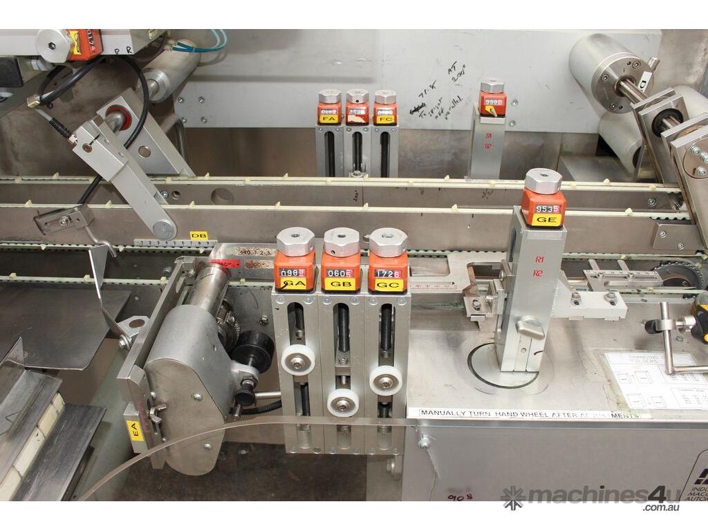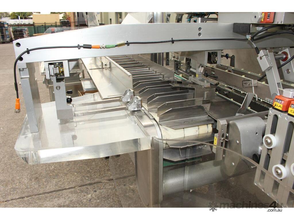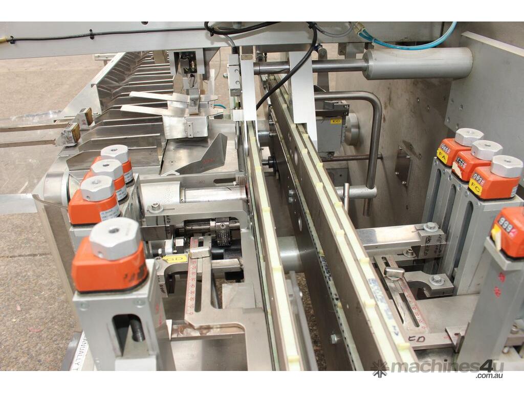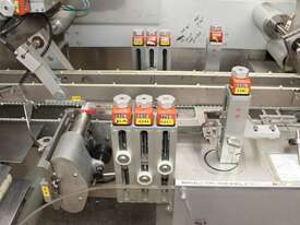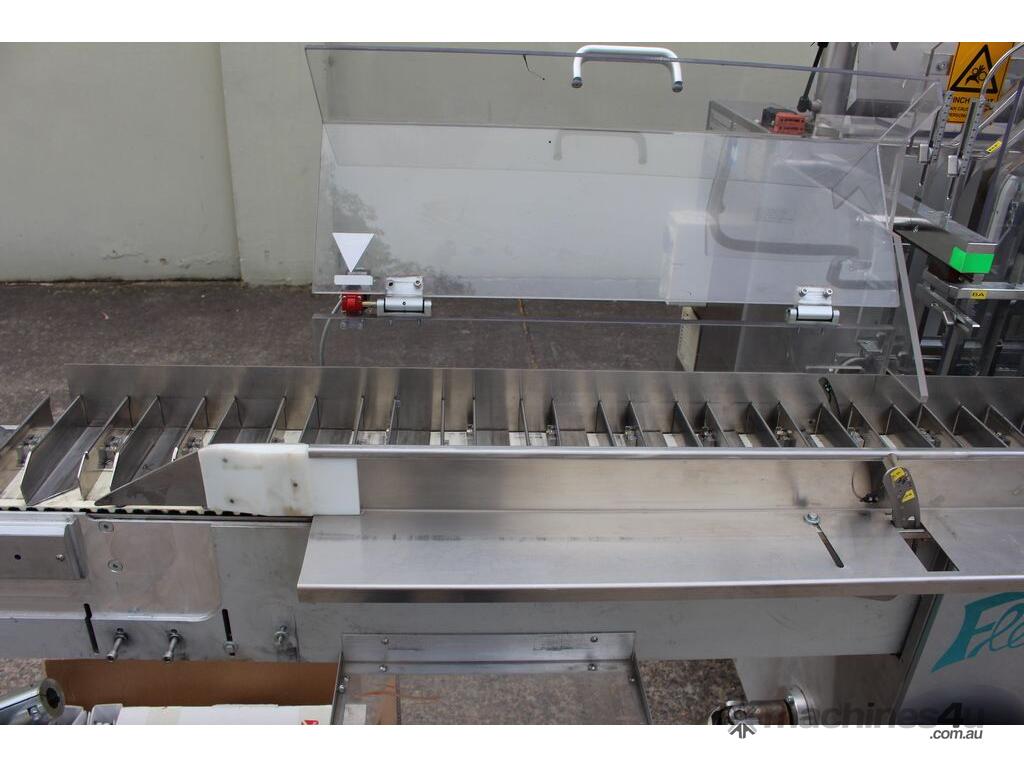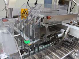 Bottle Cartoner, "IMA" model FLEXA CSD, automatic horizontal cartoning machine with 170mm wide belt and adjustable carton sizing, carton size range 48mm to 80mm width and 89mm to 140mm length, suitable for product sizes 45mm to 78mm width and 85.5mm to 136mm length, complete with infeed conveyor for laying down bottles, supplied with control system, 3 phase 415V power supply, mobile unit, overall dimensions approx. 4500mm long x 1800mm deep x 2000mm high, suitable for pharmaceutical, nutraceutical and cosmetic packaging applications