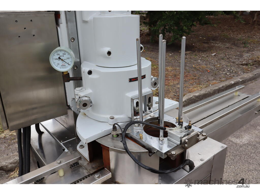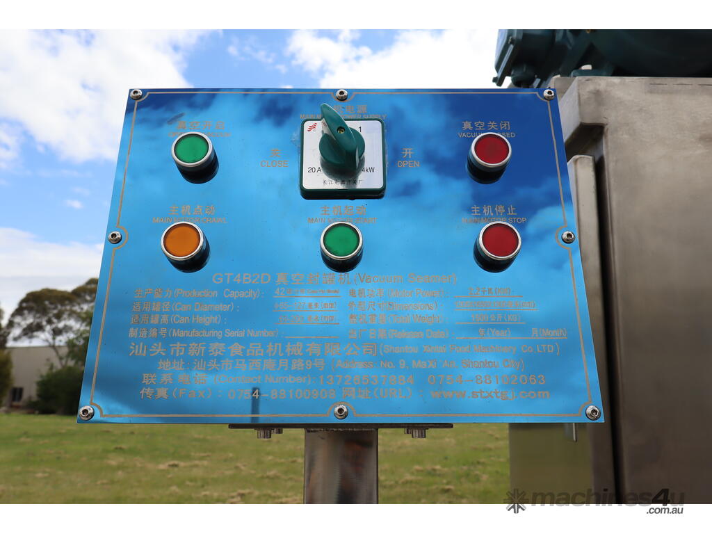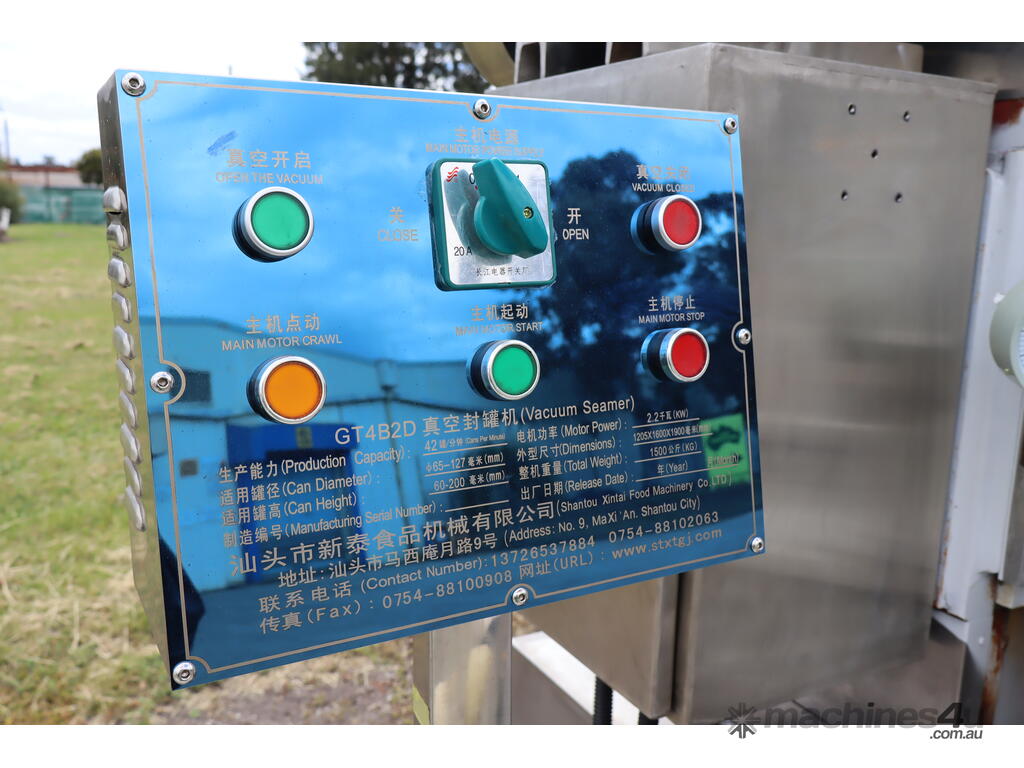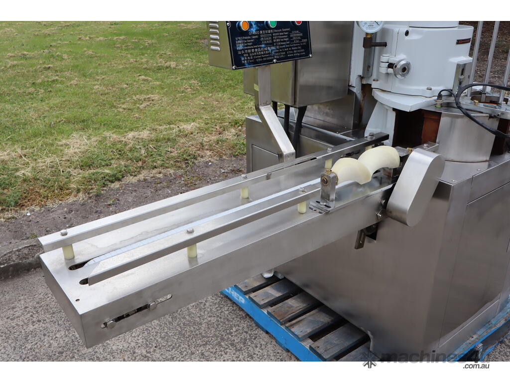 This machine is equipped with an automatic vacuum sealing system for sealing round tin cans (solid cans).