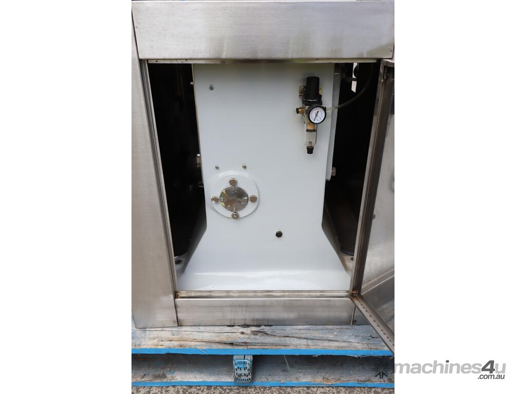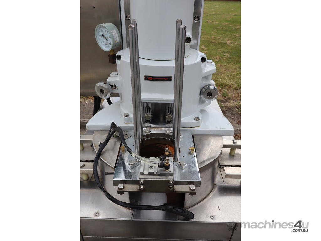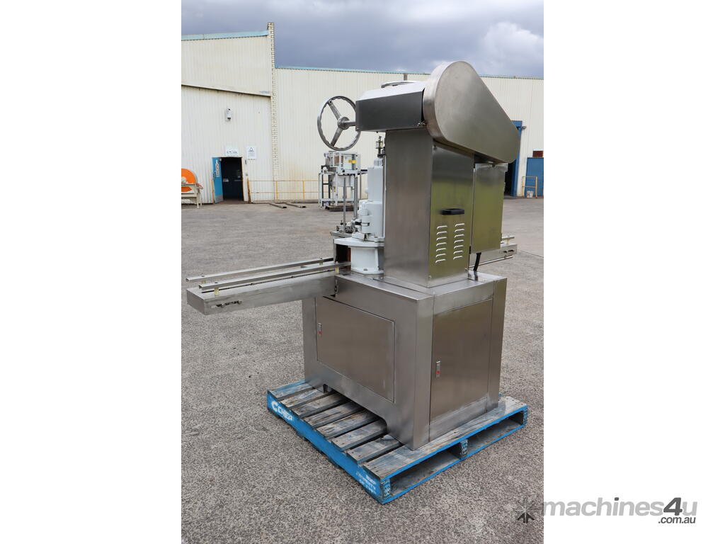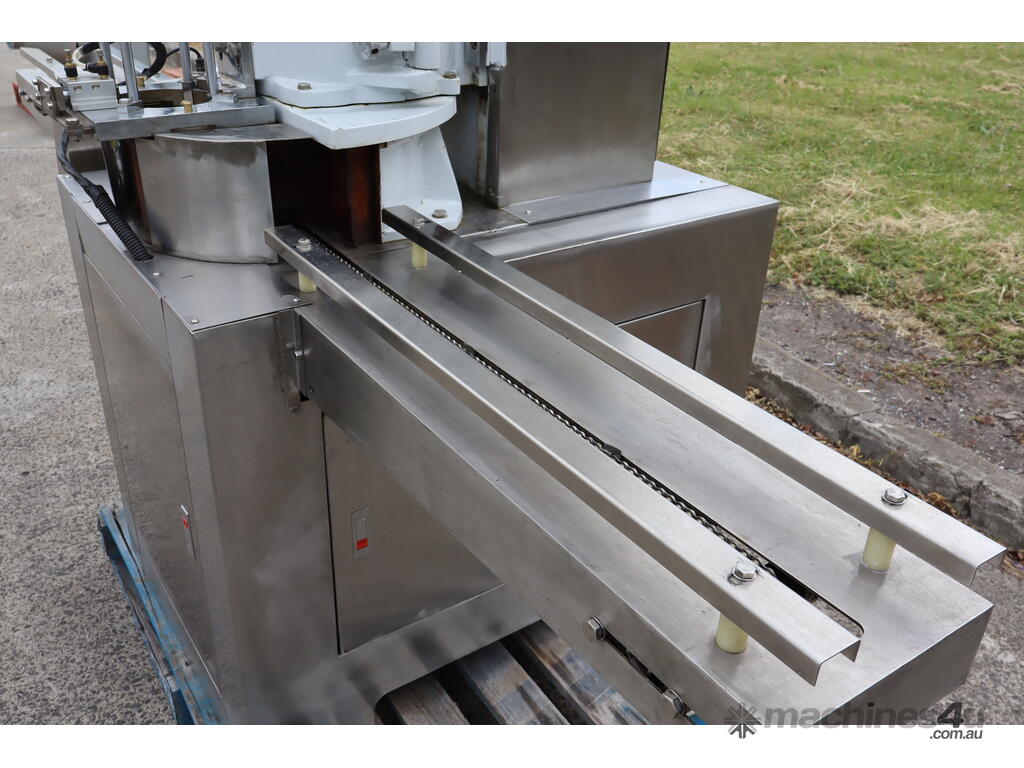 This machine is equipped with an automatic vacuum sealing system for sealing round tin cans (solid cans).