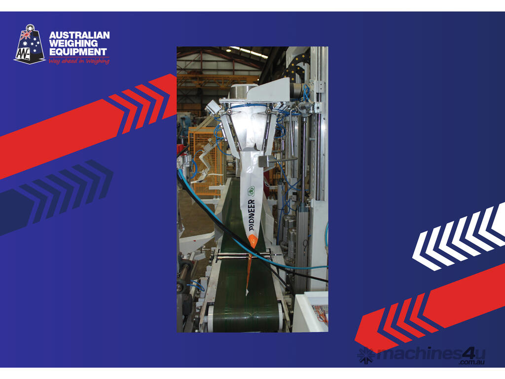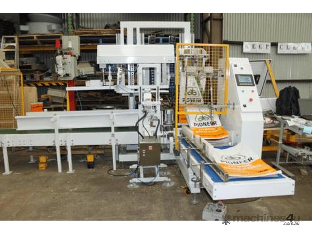 repetitive tasks of filling bags. The Sack Placer takes the bag from a magazine of bags and via a vacuum and mechanical movement system opens the bag and places it under the filling spout.