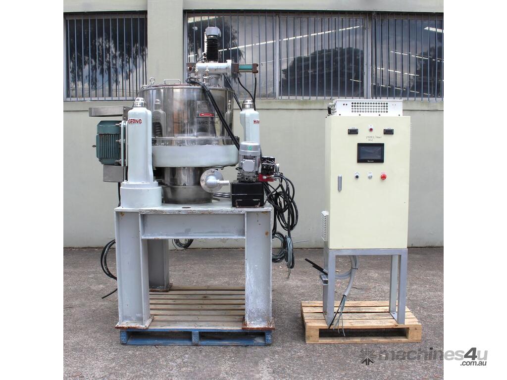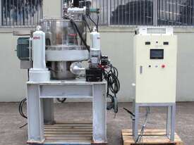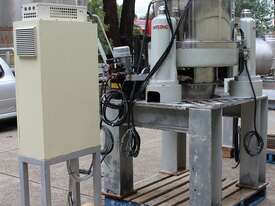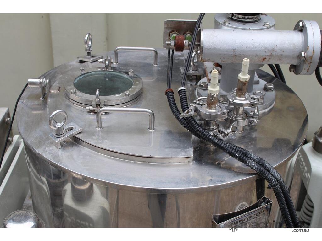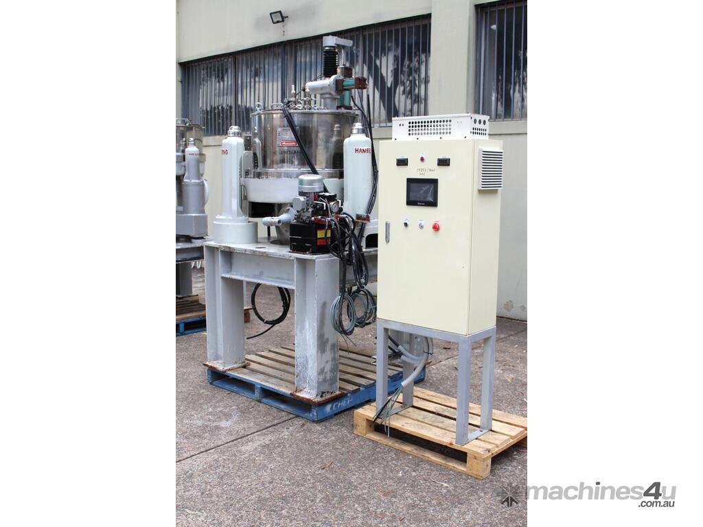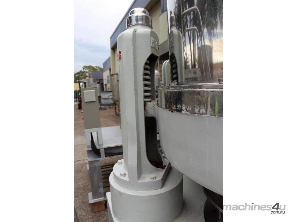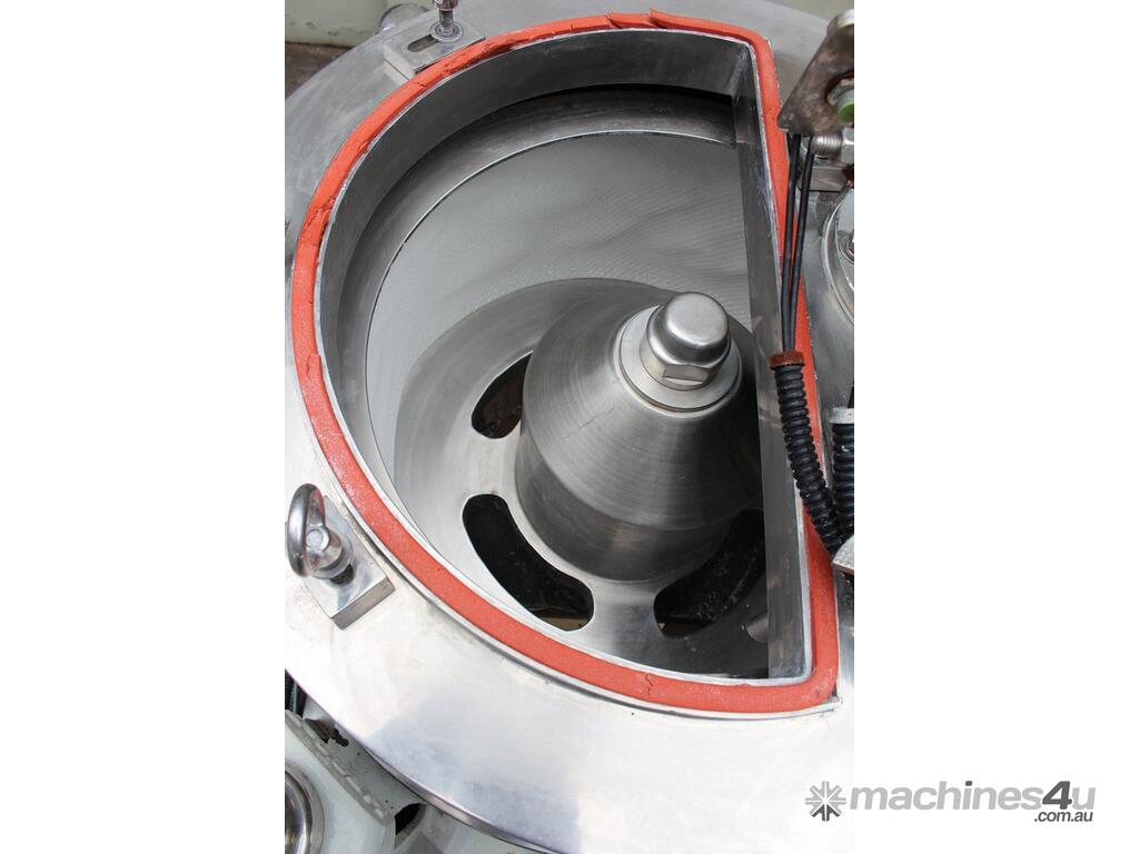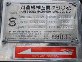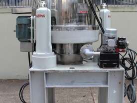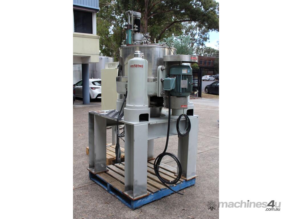Automatic Scraper Centrifuge, "HANSEONG" Model HL26, capacity 100L, basket dimension: 660mm dia x 300mm deep, speed 2000 rpm, driven by 3 phase 7.5kw motor, hydraulic auto scraper with powerpack overall dimension: 1550mm (L) x 1150mm (W) x 2400mm (H), made in Korea