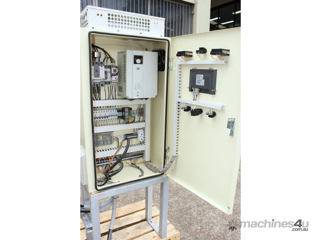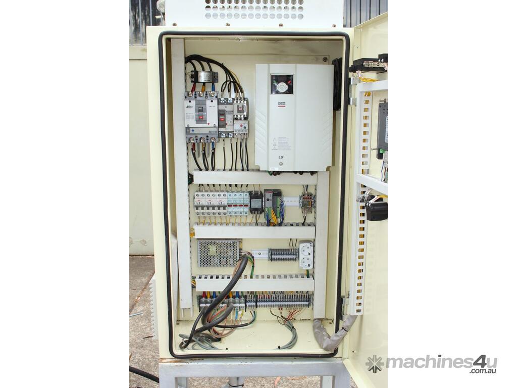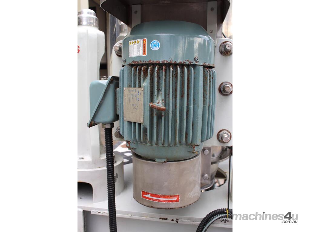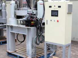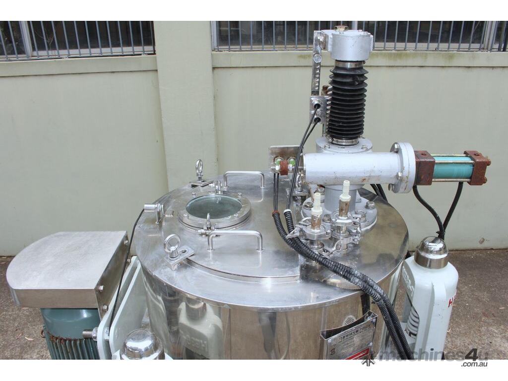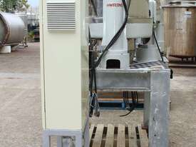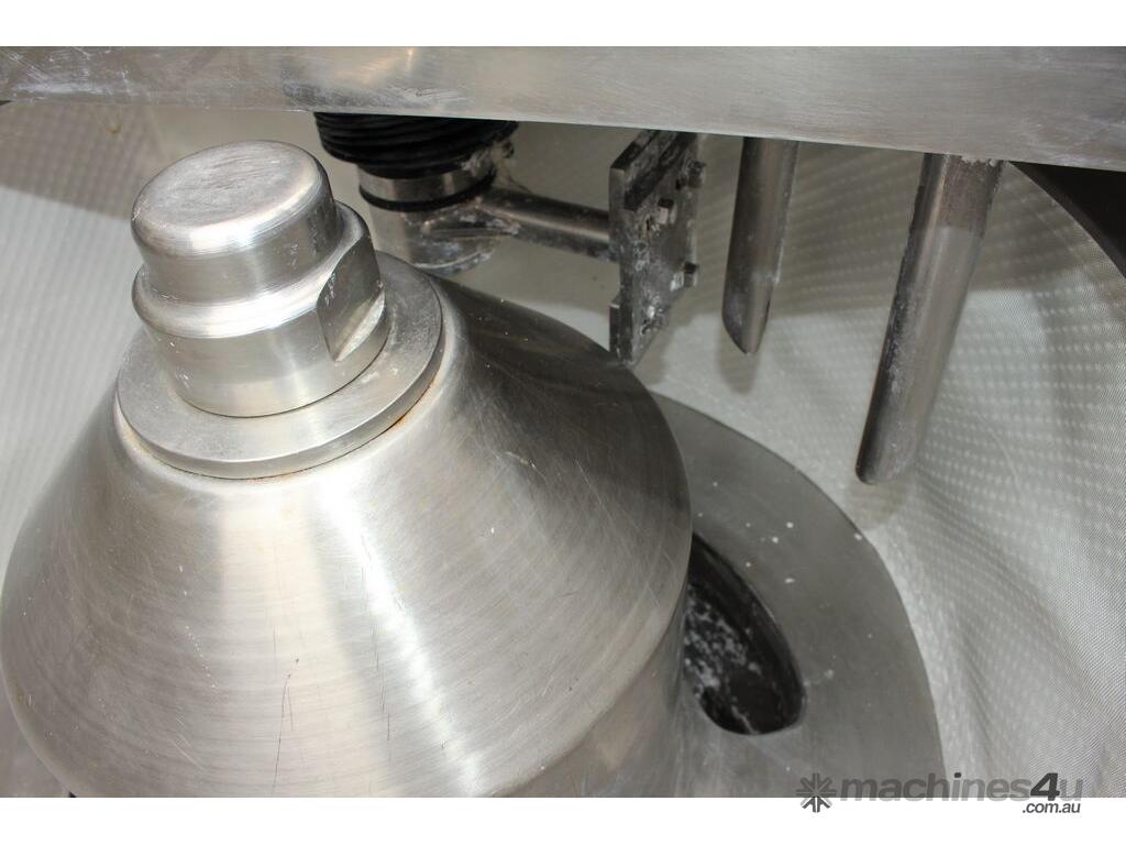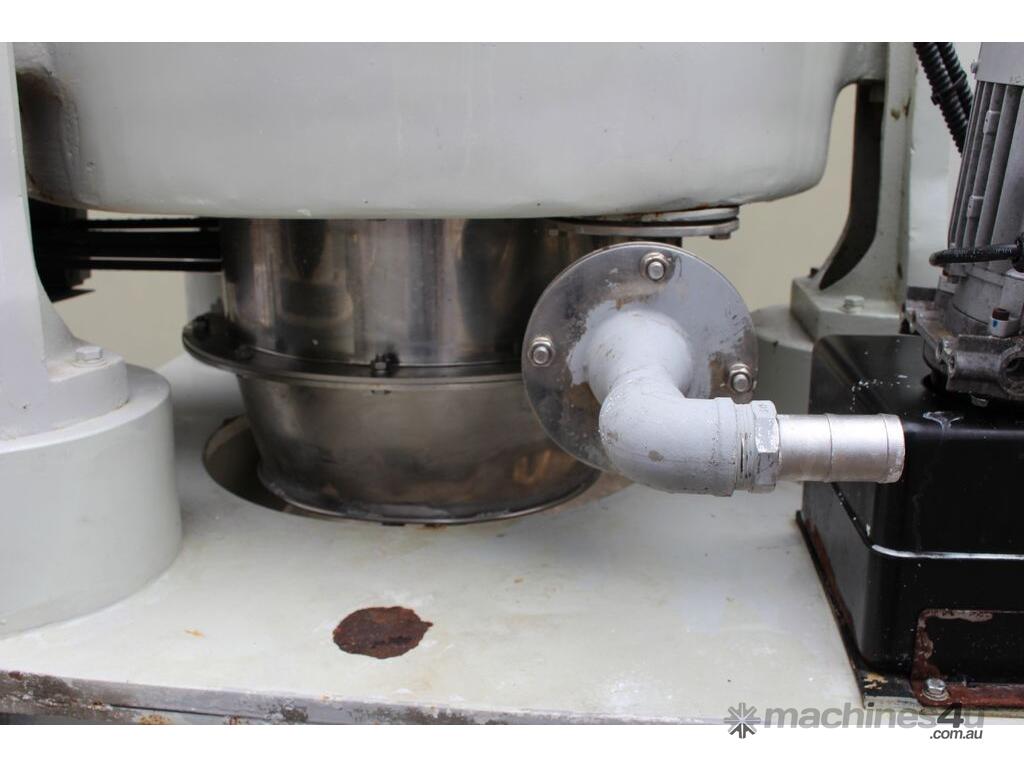 Automatic Scraper Centrifuge, "HANSEONG" Model HL26, capacity 100L, basket dimension: 660mm dia x 300mm deep, speed 2000 rpm, driven by 3 phase 7.5kw motor, hydraulic auto scraper with powerpack overall dimension: 1550mm (L) x 1150mm (W) x 2400mm (H), made in Korea