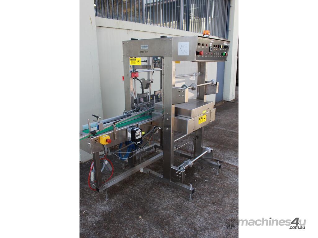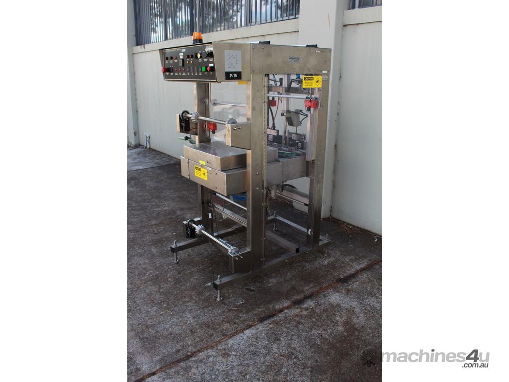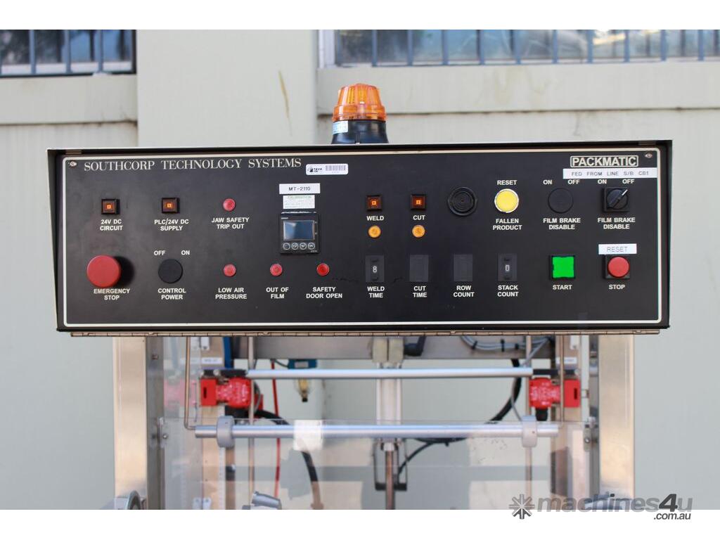 Automatic Sleeve Wrapper Collator, "Packmatic", Model 50ASW25VS, stacking type unit, complete with infeed variable speed conveyor, all stainless steel frame.