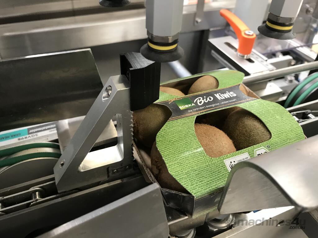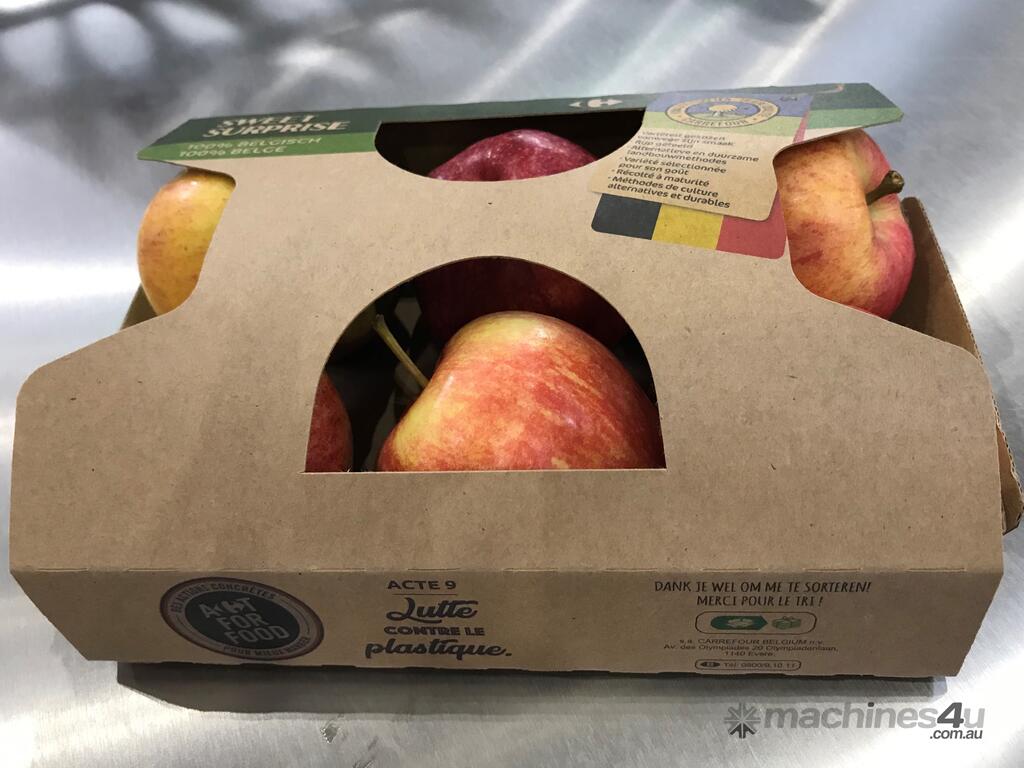 + With 0% plastic, the unit can pack kiwis at 75 packs/min into a 100% recyclable cardboard pack.