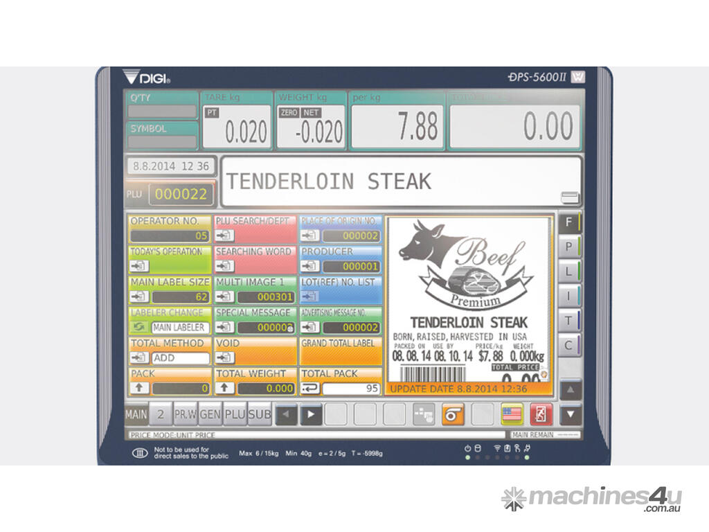 This weigher & labeller is in excellent condition. Imported by Wedderburn, this Digi LI-5600II maximizes the efficiency of in-store pre-packaging operation and has a compact, space-saving design. Its compact design provides opportunities in various applications that require a simple, unique solution for automatic and semi-automatic labeling. The LI-5600II is also highly compatible with existing equipment such as MAP packaging machines.