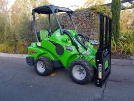 Robust and simple hydraulics. Ideal for a wide range of industries thanks to its power and straight forward hydraulics. The Flip-Up Pallet Forks have been specifically designed for easily transporting the Avant compact mini loader and forks to multiple job sites. The forks flip-up so that the Avant loader can be transported on a truck with the forks still attached.
