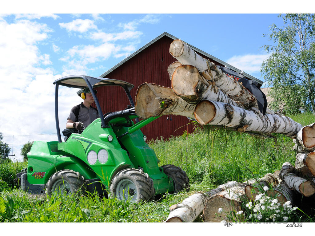 The Avant Log Grab mounts on Avant Pallet Forks. With the Avant Log Grab you can lift and transport single logs or smaller timber bundles with the Avant articulated mini loader. The grab is equipped with a powerful hydraulic cylinder and can lift bigger stones, as well as branches, logs, fence poles and similar objects.