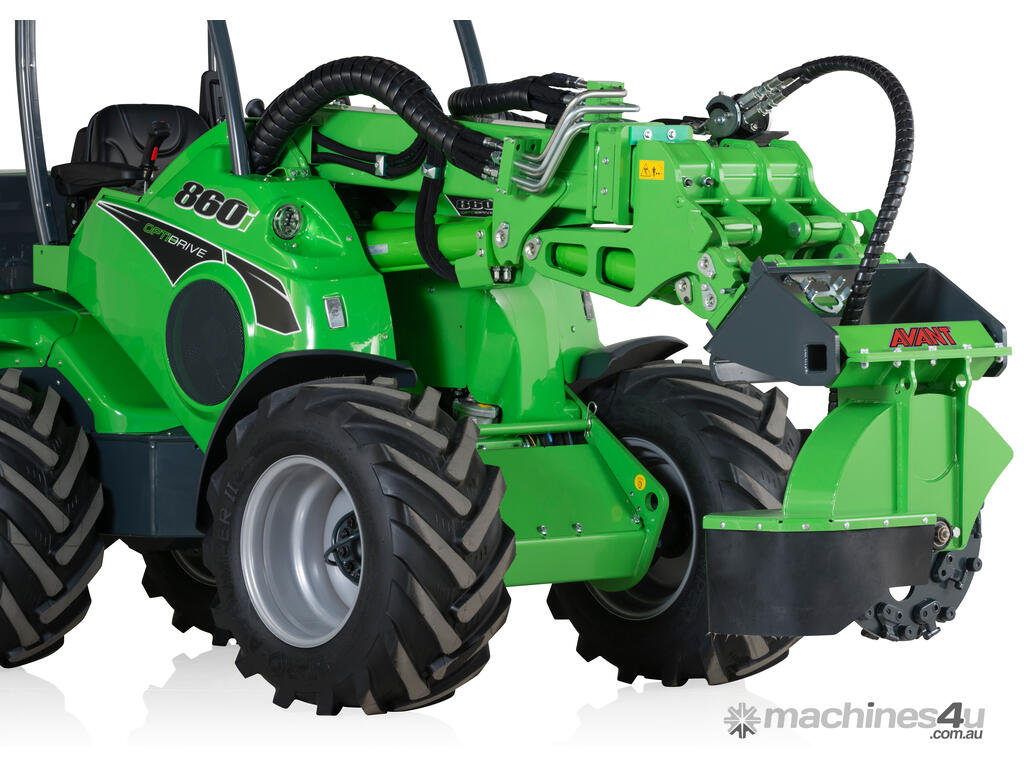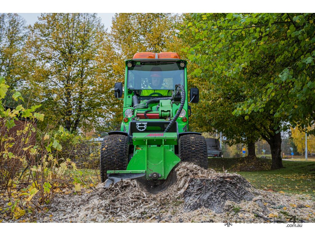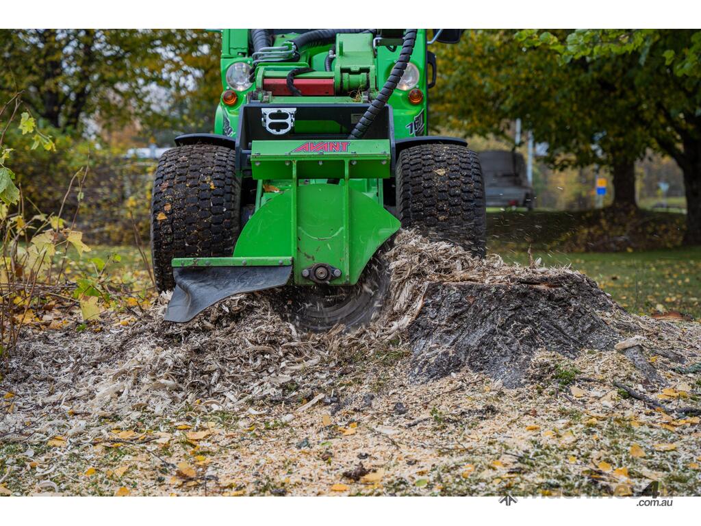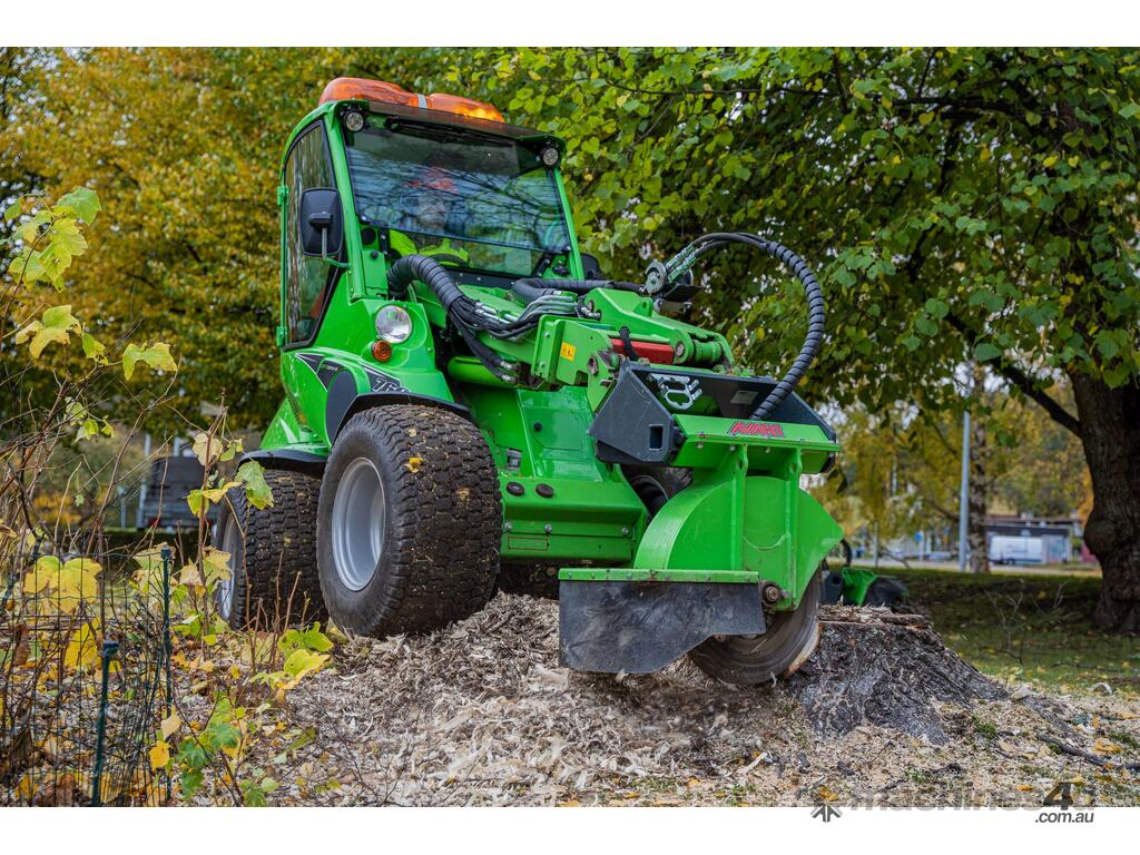 The Avant Stump Grinder attachment is an efficient and easy to operate tree stump remover that is ideal for arborists, treecare workers and landscapers. The cutting disc is mounted crosswise to the loader, which means it throws the wood waste to the right side. This means the waste doesn’t fly onto the operator or the loader. The Avant Stump Grinder attachment is fitted with a protective rubber cover which prevents the wood from flying around.