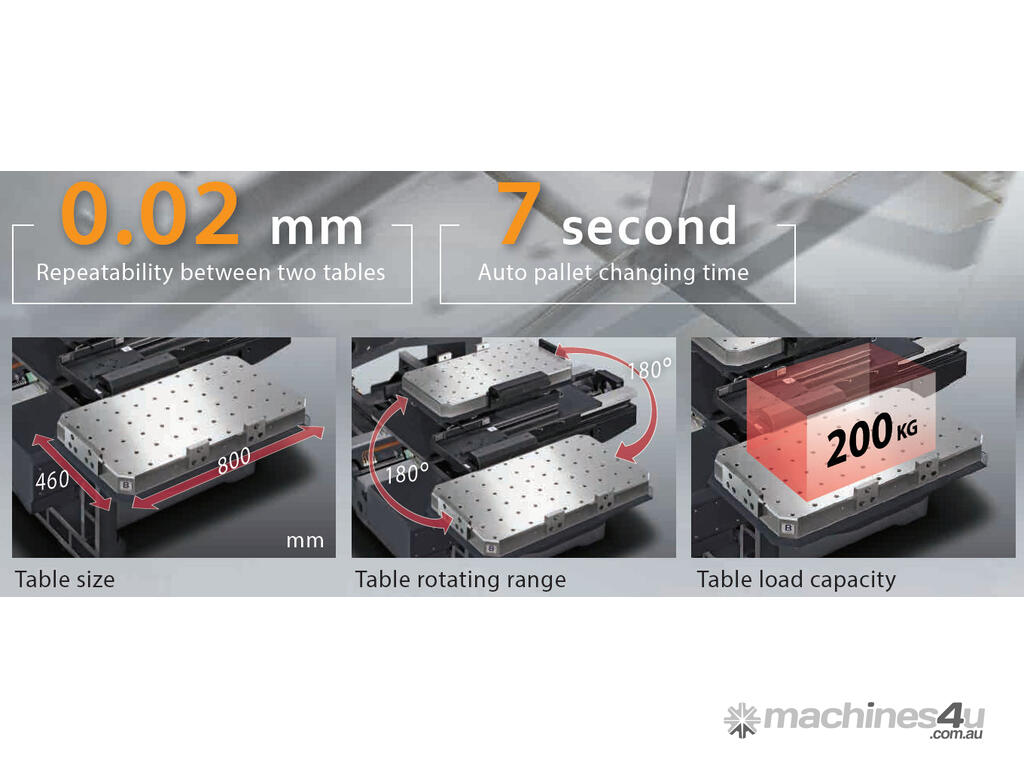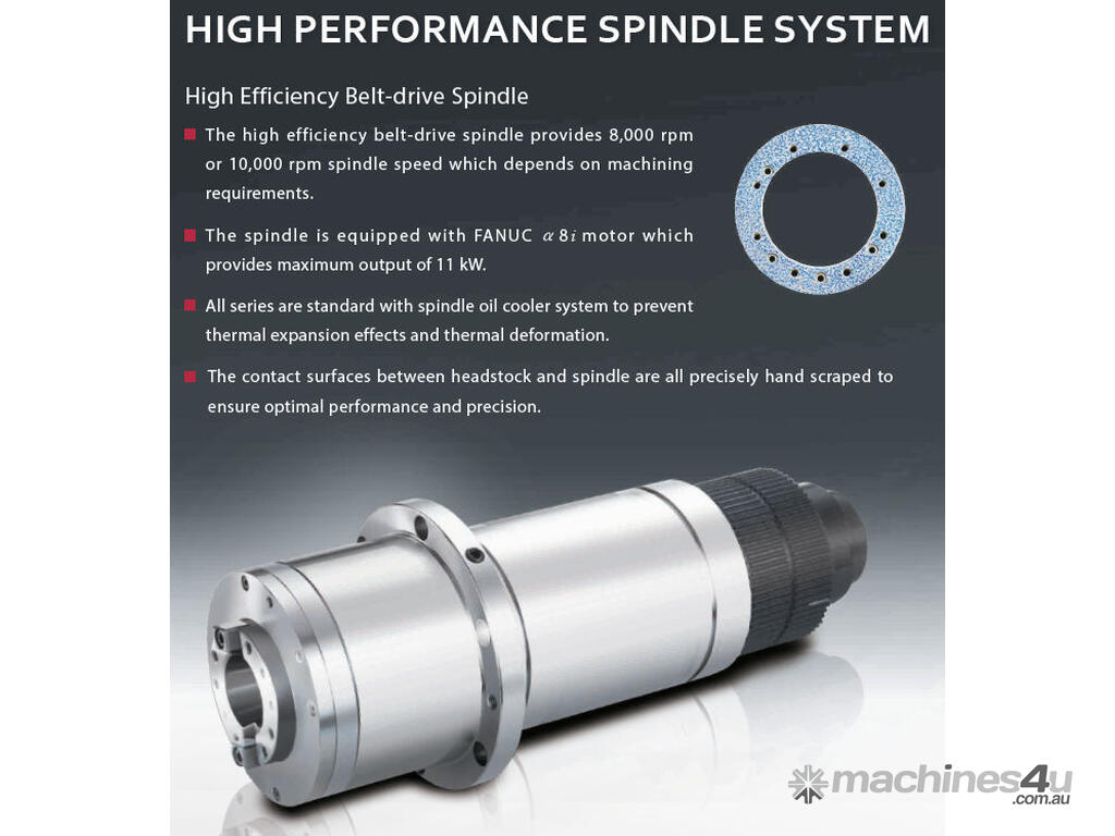 C/w: A powerful 15hp spindle motor, prepared for Coolant Thru Spindle, high speed Arm Type ATC, coolant flood ring around the spindle, spindle oil chiller, integrated chip augers, chip flushing system, preparation for 4th axis, oil skimmer, integrated air gun and coolant wash down gun. Many other options available on request.