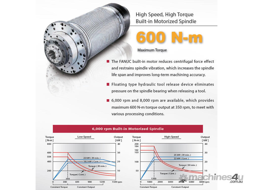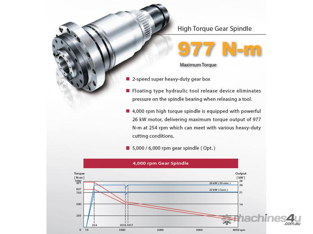 C/w: Gearbox spindle with 642nm of spindle torque, high speed arm type ATC, fully enclosed guards, spindle oil chiller, integrated chip augers and lift up conveyor. Many other options available on request.