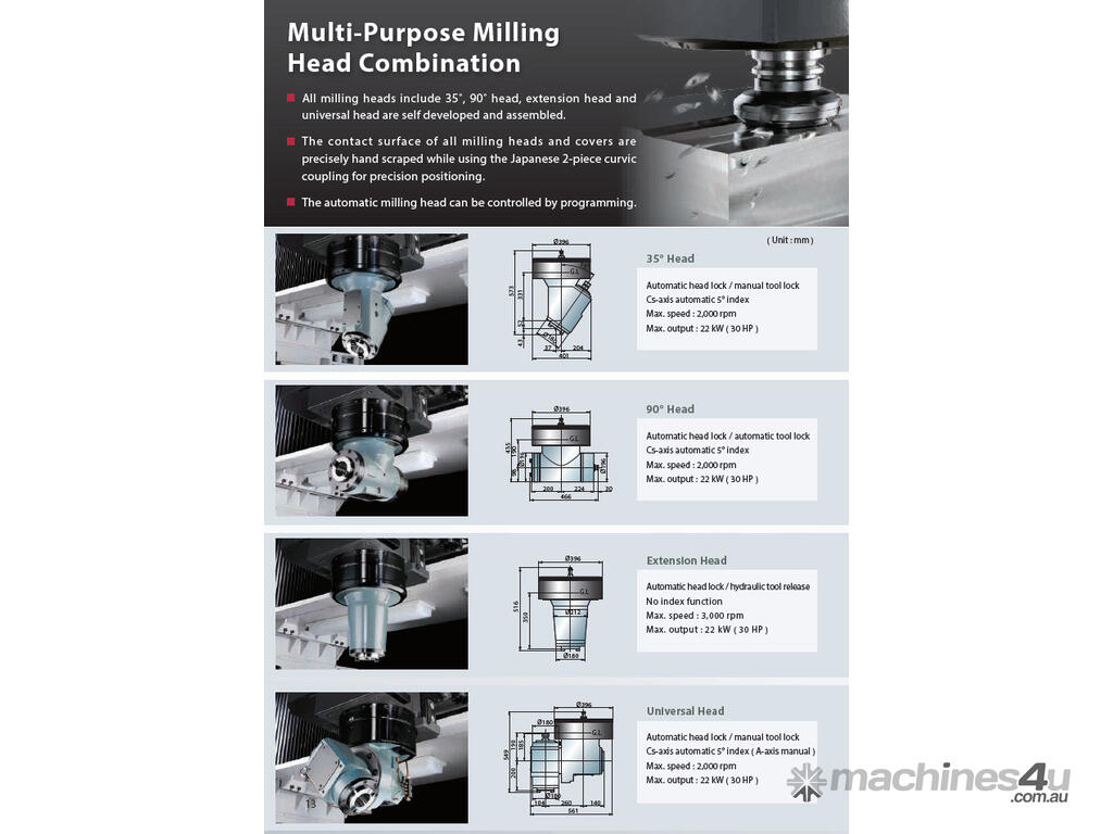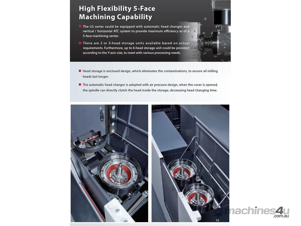 From Awea, the No 1 DMC manufacturer in Taiwan, AWEA with mature manufacturing abilities and advanced technology skills, the LG series gantry type machining centre combines gantry type structure with adjustable crossbeam mechanism, strong horse power and super rigidity features, to provide you with a complete machining solution for extra-large workpieces. It is now widely used in aerospace, shipbuilding, energy and machine tools industries. The LG series can also be equipped with an advanced 5 axis capable head or various types of removable heads, automatic head changer and vertical / horizontal ATC system to provide maximum efficiency as of a 5-face machining centre. Looking for value without sacrificing quality? Look no further !!!