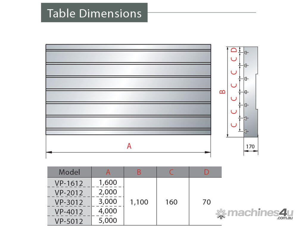 Table size (mm): 2,000 x 1,100 (max length 5,000)