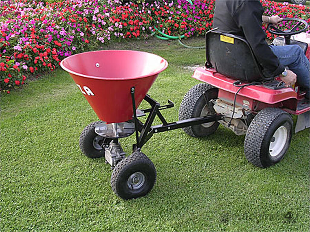 This fertilizer spreader is particularly suitable to be trailed by small lawn-tractors and ride on mowers. All steel construction makes it strong and durable. The machine can be used easily to fertilizing lawns, gardens, parks. It is suitable for hobby use.