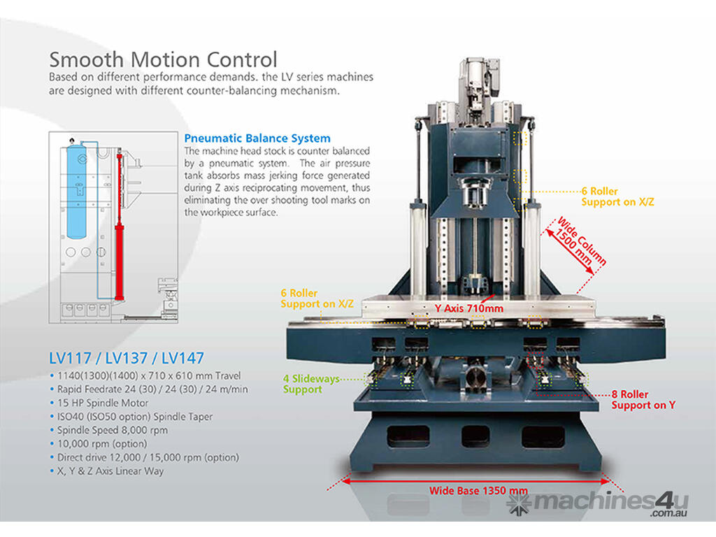 New Pinnacle LV117/ LV137 / LV147 - CNC Vertical Machining Center. – Linear Guide Ways