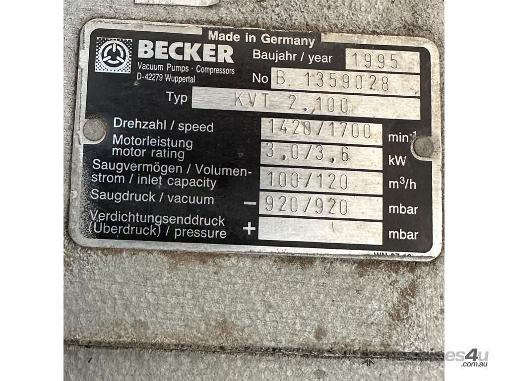 BECKER KVT 2.100 3kW 3 phase oil sealed vane vacuum pump 100m3/hr KVT2.100 :      $1,850 AUD($2,035 Inc. GST)