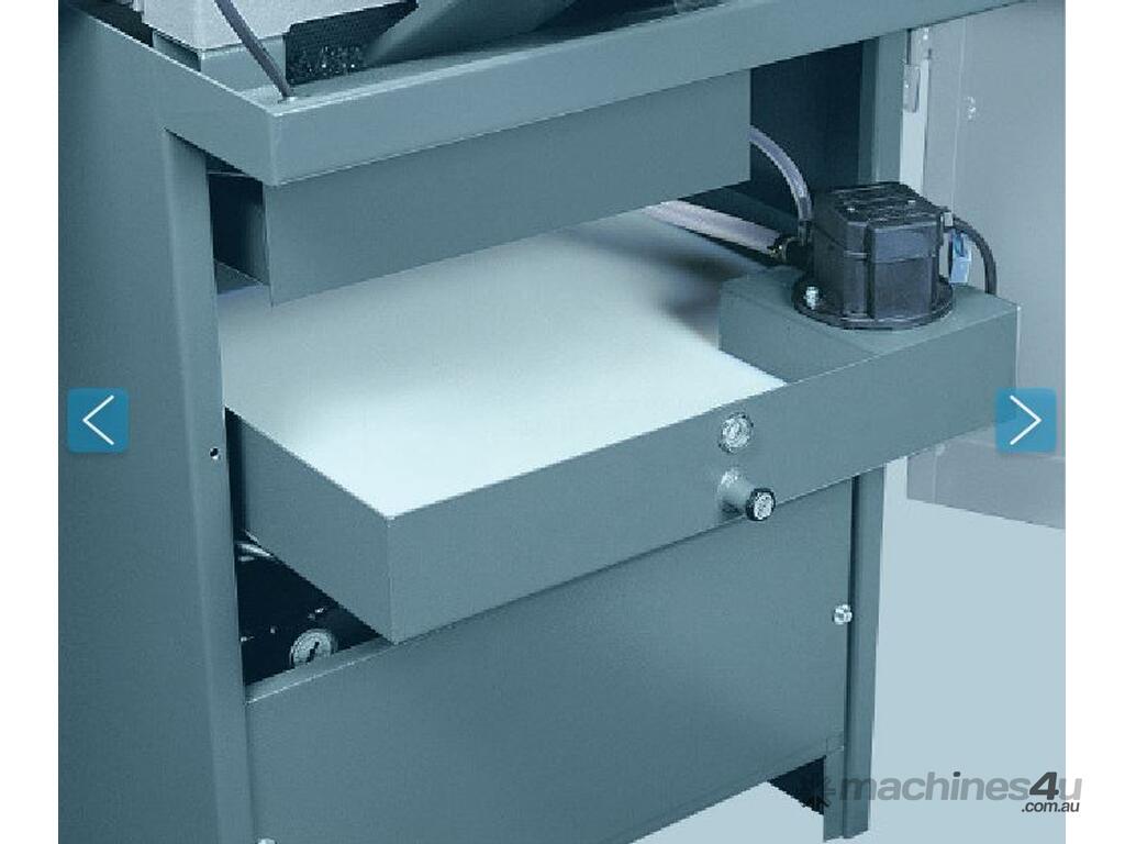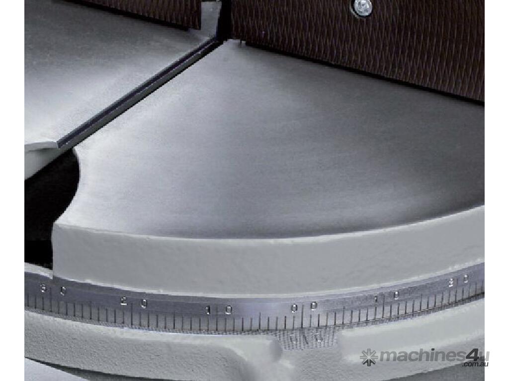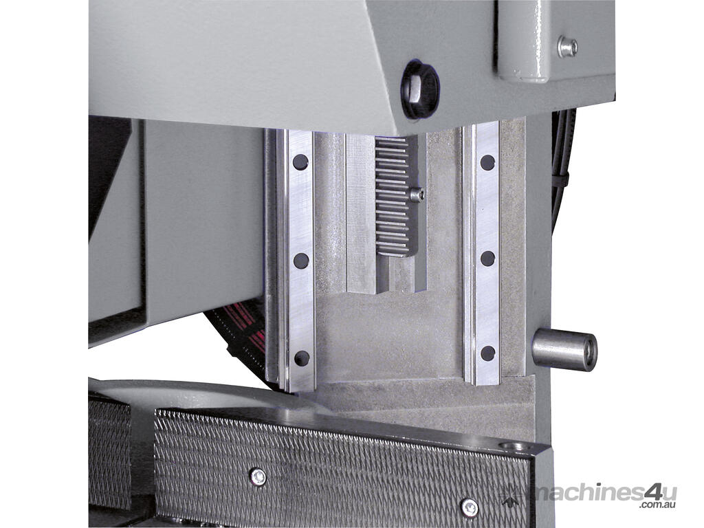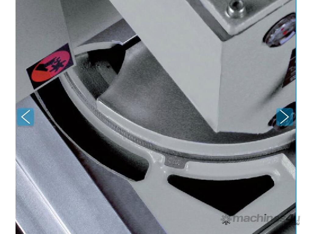 • This model has a vertical sawing operation where the cutting head moves on linear bearings mounted to a cast iron pedestal, providing superior rigidity and significantly reduced cutting vibration.