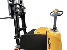 Introducing the CB30 Counterbalance Stacker from Big Joe Forklifts, a powerful and versatile solution designed to handle heavy-duty, non-standard pallet handling needs. With a 1.5-tonne capacity and lift heights up to 5.0 metres, the CB30 is equipped to tackle various material handling tasks with ease. Its unique legless counterbalance design sets it apart from most pallet stackers, enabling compatibility with non-standard pallets and offering the ability to load trucks or pallet racking from any position.