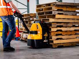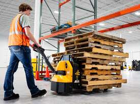 The Big Joe D40 Electric Pallet Truck is a pallet mover engineered for performance, precision, and operator comfort. With powerful electric drive, smooth hydraulic lift, and a host of ergonomic features, the D40 is ideal for warehousing, manufacturing, and logistics applications that require high efficiency in tight spaces.