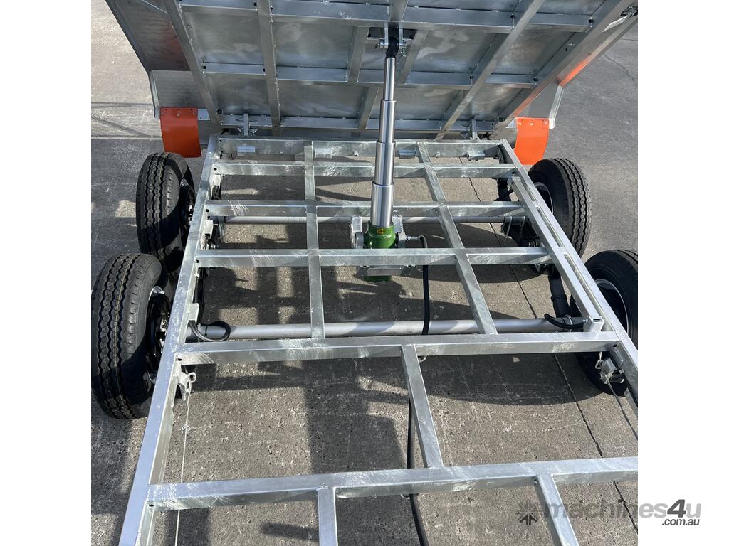 Introducing our 10×6 tipper trailer, a rugged and powerful hydraulic tipper designed to make your tough jobs feel effortless. Whether you’re a dedicated farmer, landscaper or running a construction business, our trailers provide the power you need to haul heavy cargo and unload it at your final destination with ease. Durable and dependable, this trailer features a fully welded frame constructed from hot-dipped galvanised steel and comes equipped with 15? Sunraysia rims and heavy-duty light truck tyres to eat up the road.