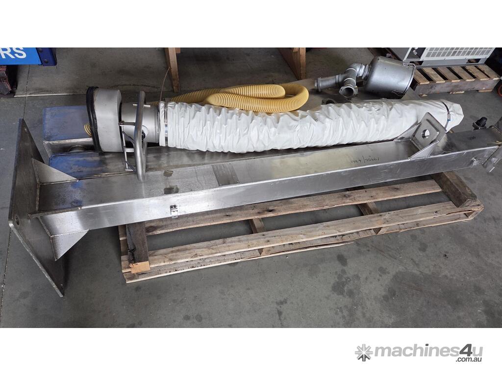 3). EILBECK JIB CRANE INCLUDING 120kg VACUUM TUBE LIFTER, FULL STAINLESS STEEL CONSTRUCTION SUITABLE FOR FOOD, BEVERAGE, PHARMACEUTICAL INDUSTRIES etc. THE TUBE LIFTER DESIGN ELIMINATES THE NEED FOR A CHAIN HOIST. THE BUSCH VACUUM PUMP ENABLES FAST ONE-OPERATOR HANDLING. AS NEW CONDITION. SAVE $ 000's