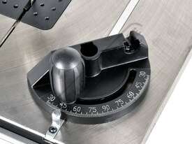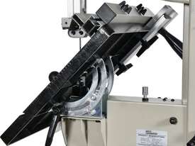 This bandsaw has a welded steel frame designed to keep your machine from twisting whilst cutting at 245 x 145mm capacity. It has a generously 360 x 320mm cast iron table with an aluminium rip fence and mitre guide to help you cut straight or angles to the required size. The table mounting trunnions are adjustable to get your tale to tilt from 90 to 45 degrees and has a quick action locking lever. This machine also has its own LED light that is mounted to a flexible arm so the light can be adjusted direct on the cutting line no matter what timber size you are cutting.