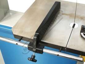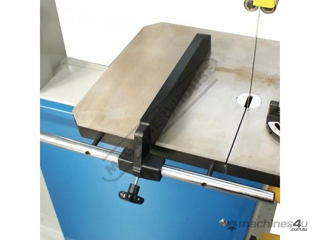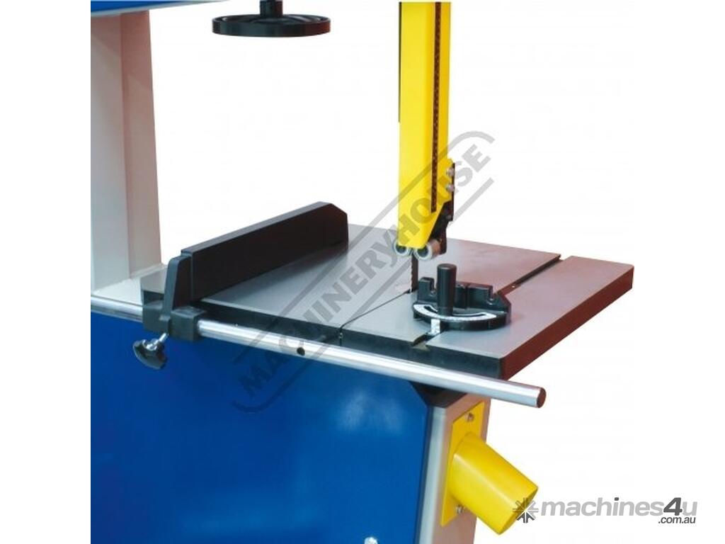 The welded steel frame is extraordinary rigidity, allowing superiorly high blade tensions and can handle up to a 38mm wide blade. The machine is powered 2.2kW/3hp 415V smooth and powerful motor & incorporates a mechanically foot brake lever allowing operator to stop the motor & blade fro rotating very quickly. The large cast iron blade wheels provide extra inertia to help cut through the toughest timbers and are balanced for smooth operation when running. Uniquely, the precision ground cast iron heavy duty table and cast iron rip fence ensures great stability & accuracy when using on any variety of timbers.
