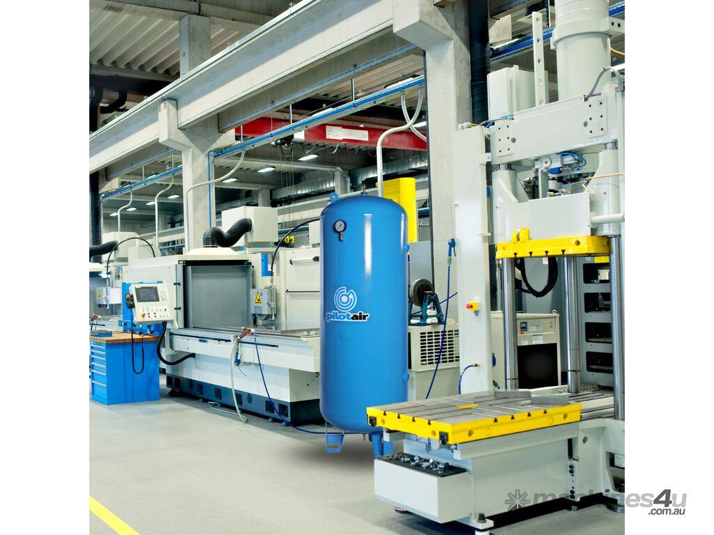 The Pilot 3100600 Vertical Compressed Air Storage Tank. Coated in industrial grade enamel, the Pilot 3100150 Vertical Compressed Air Storage Tank is constructed in accordance with AS1210 and comes with the manufacturer's data report. It comes standard with a safety valve, pressure gauge, and manual condensate drain, offering a reliable compressed air storage solution.