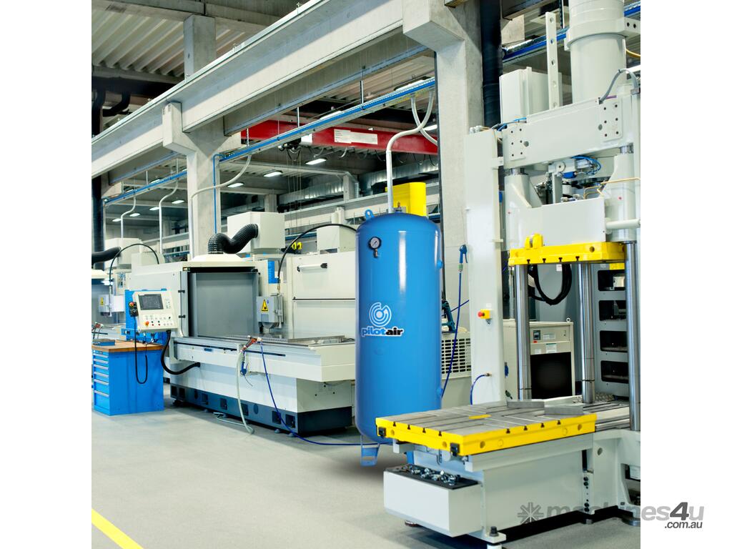 The Pilot 3101000 Vertical Compressed Air Storage Tank. Coated in industrial grade enamel, the Pilot 3100150 Vertical Compressed Air Storage Tank is constructed in accordance with AS1210 and comes with the manufacturer's data report. It comes standard with a safety valve, pressure gauge, and manual condensate drain, offering a reliable compressed air storage solution.