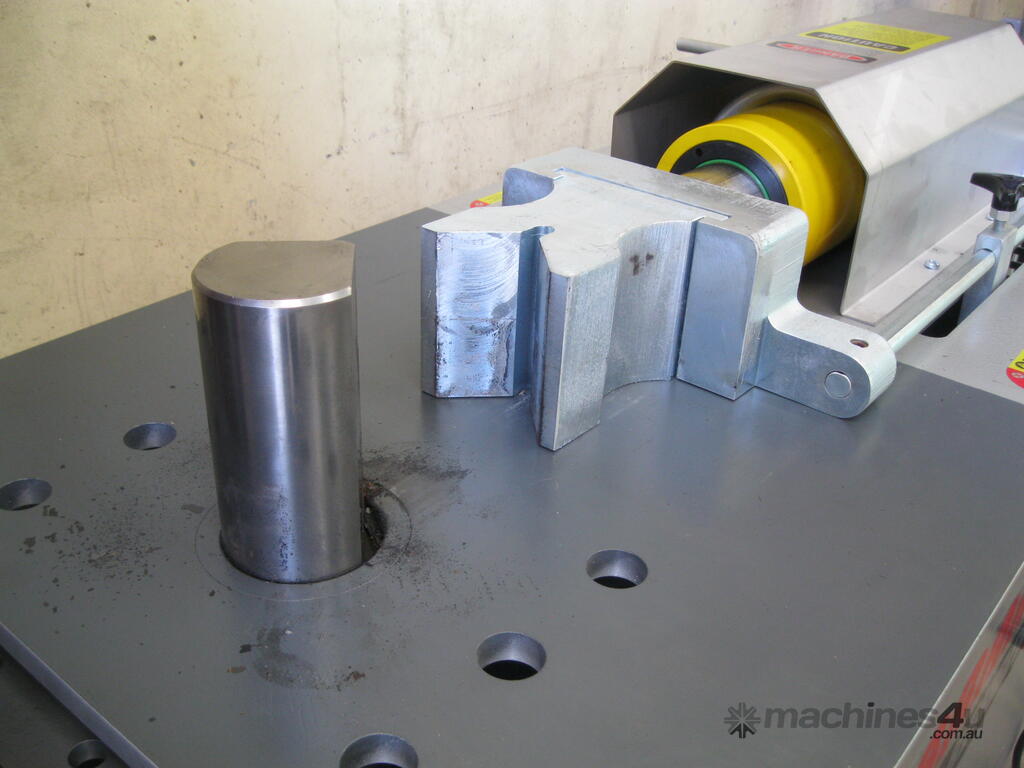 The Pro Bender 35t bending machine is a hydraulically powered metal bender for thick material.