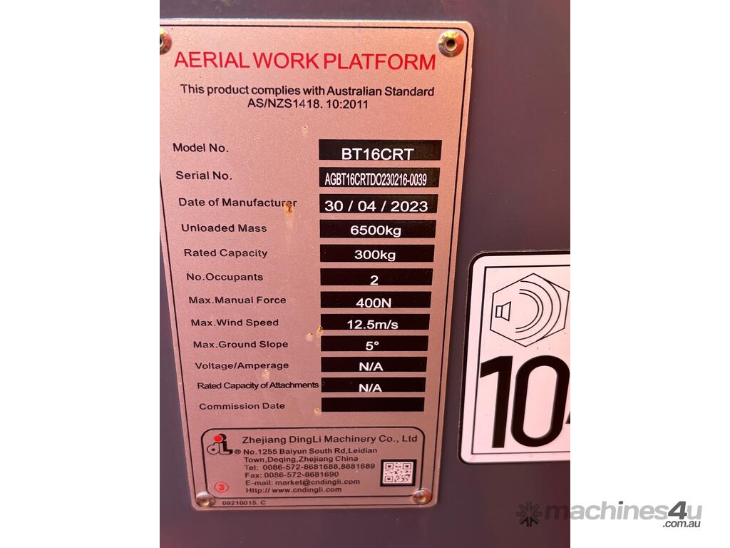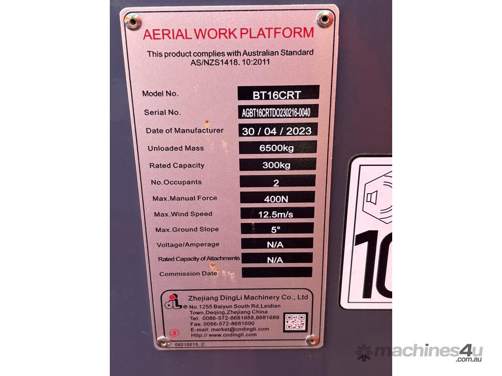 With a maximum working height of 16.33 meters (53 feet) and a Safe Working Load (SWL) of 300 kg, the Dingli BT16CRT is perfect for maintenance, installation, and construction jobs. Whether you need to reach high elevations or lift heavy loads, this machine is up to the task. We have six units in stock, located at our Brisbane depot, and they are ready for immediate delivery at your convenience.