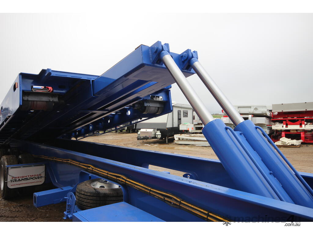 These robust 45ft trailers feature a deck with an impressive 8-degree hydraulic tilt, making loading and unloading a breeze. Each unit is self-sufficient with a diesel power pack and spool valve for easy operation. Alternatively, we can hook up hydraulics to your prime mover or install a remote control system tailored to your preferred brand.