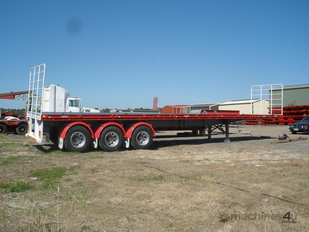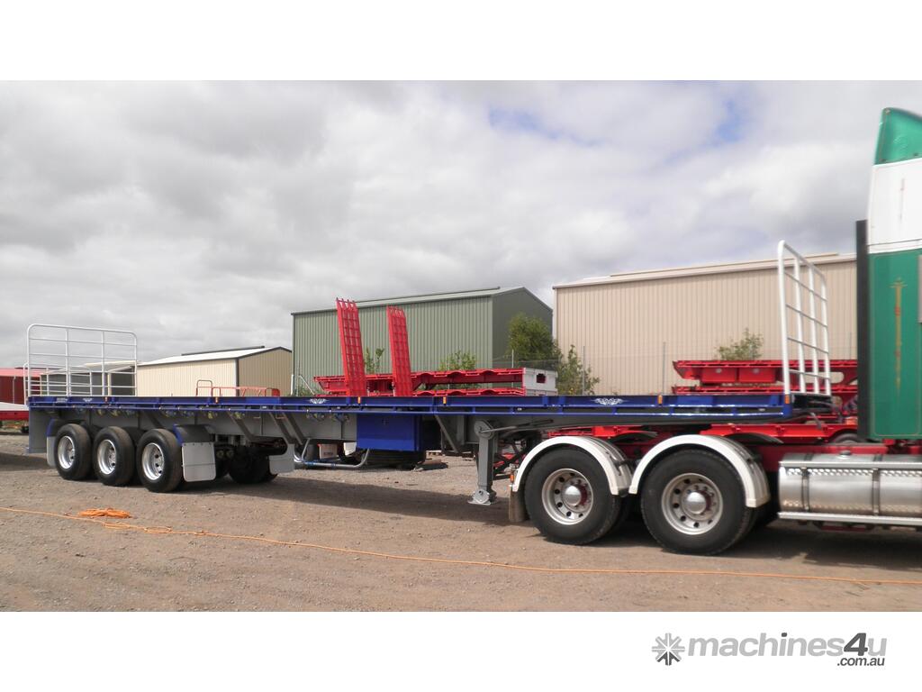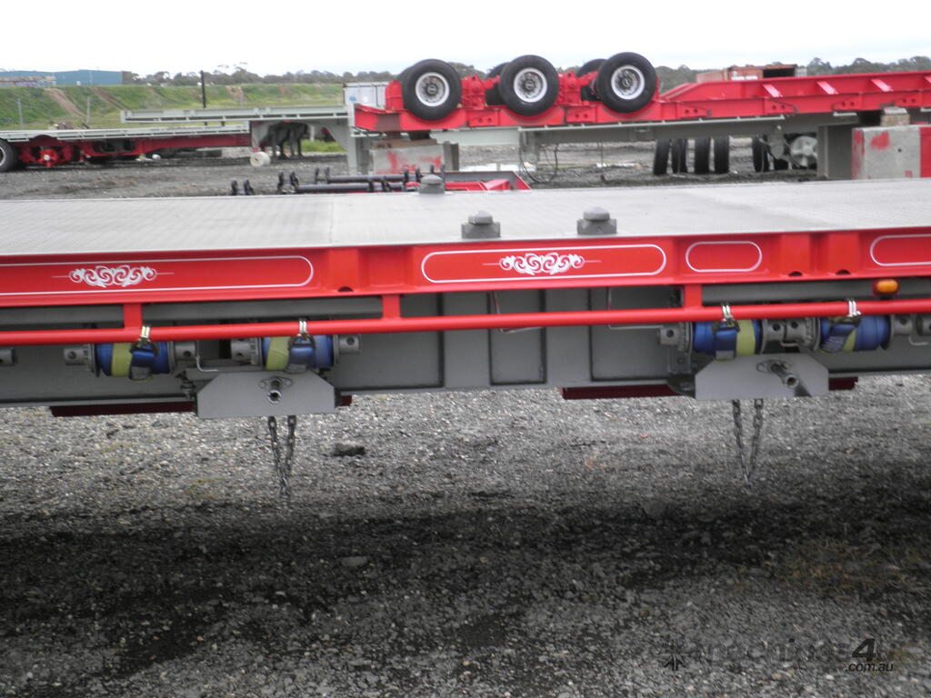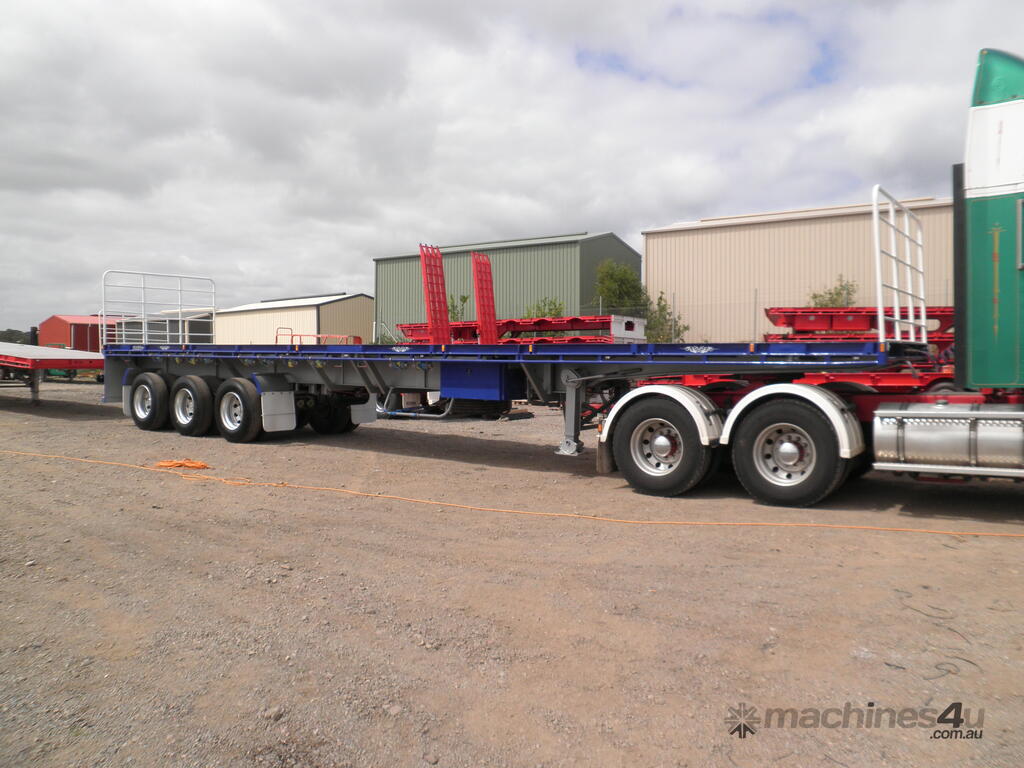 Built tough for the demanding Australian market, our 45FT Flat Deck Trailers are available in both beaver tail and straight end configurations. Standard colours are International Red or Royal Blue, but we offer custom paint options to match your fleet or preferred colours.