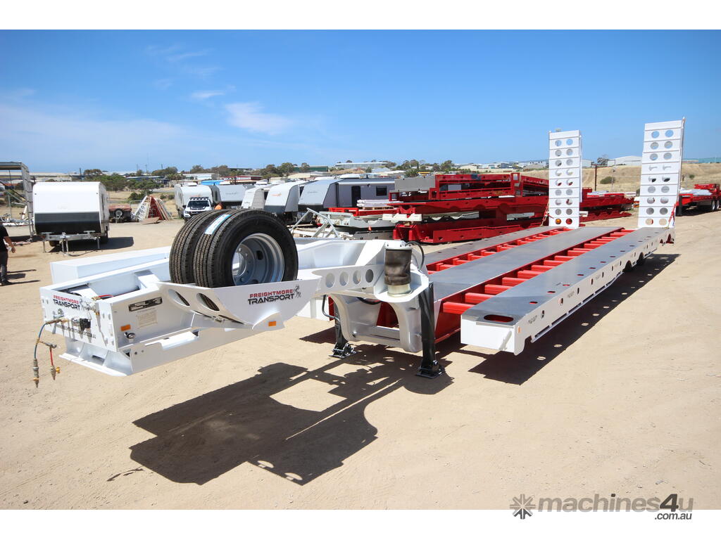 Rated at 60 tonnes, it features an oscillating skid plate with a dolly gooseneck, an 11,040mm long bottom deck, and sits just 950mm off the ground. Equipped with K-Hitch suspension and 17-inch axles, this trailer also comes with brand new low-profile 235/75R17.5 tyres, including 2 spares.