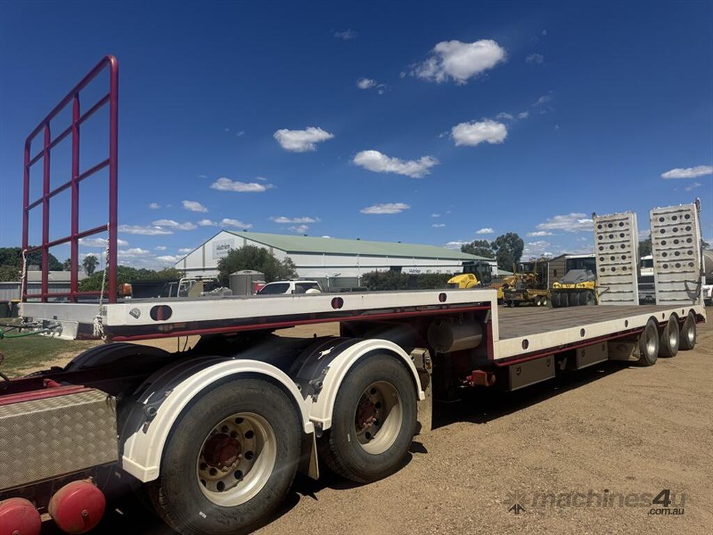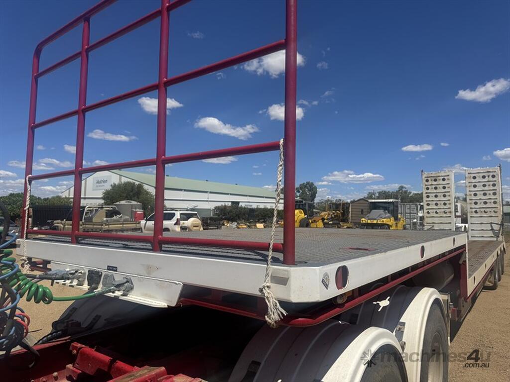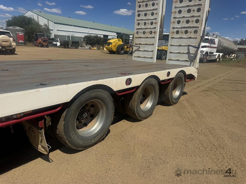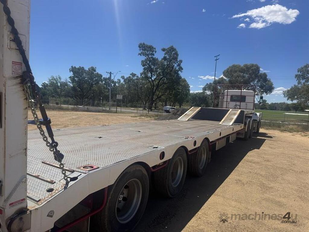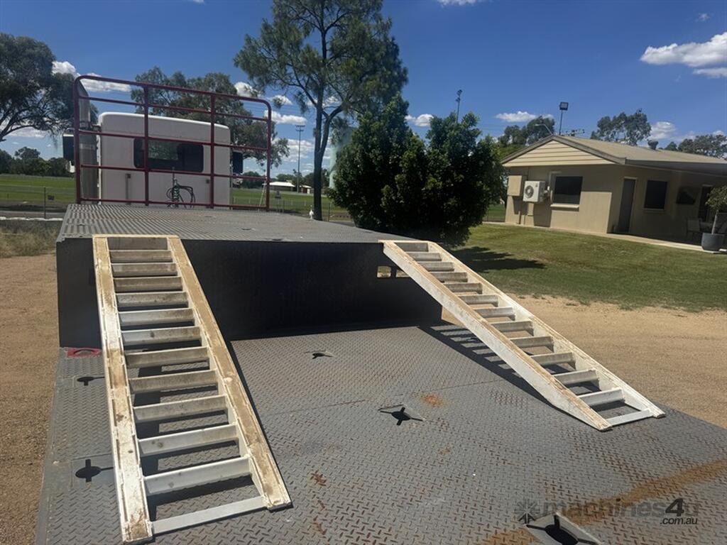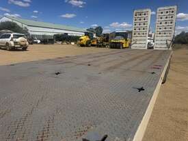 BRIMARCO DROP DECK, DOM 06/22, 13594mm long x 2490mm wide , 4040 mm top deck , 9295 mm bottom deck, Lead trailer , extra wide bifold ramps ,(1m) 4 x tool box s/steel , 5 mm chequer plate flooring, 6 x Chrome armoury rims (Outside) Deck Tie Downs Upper Deck 12, Lower Deck, Oversize, long vehicle, roadtrain combo signs, Rear beacon, 285/70R 19.5 Tyres, ATM:44 tonne GTM:25 tonne, airbags ,check attachements for further details , Located at Moree