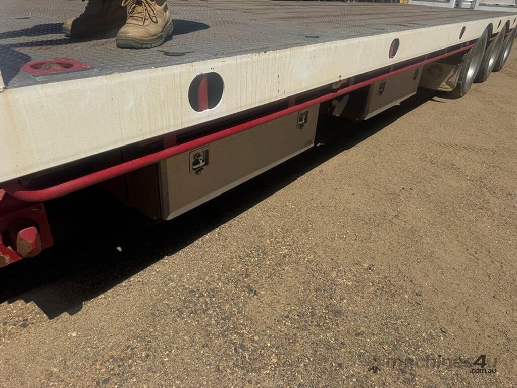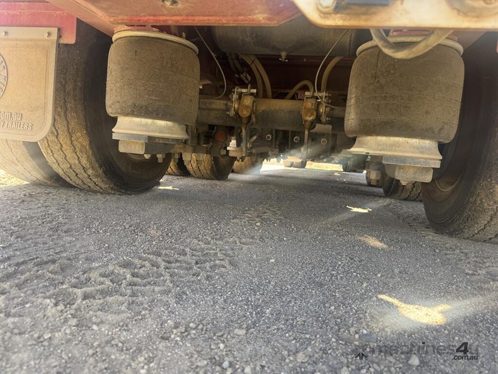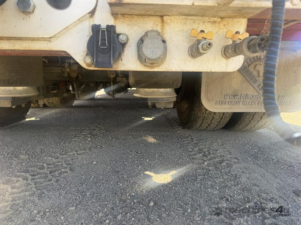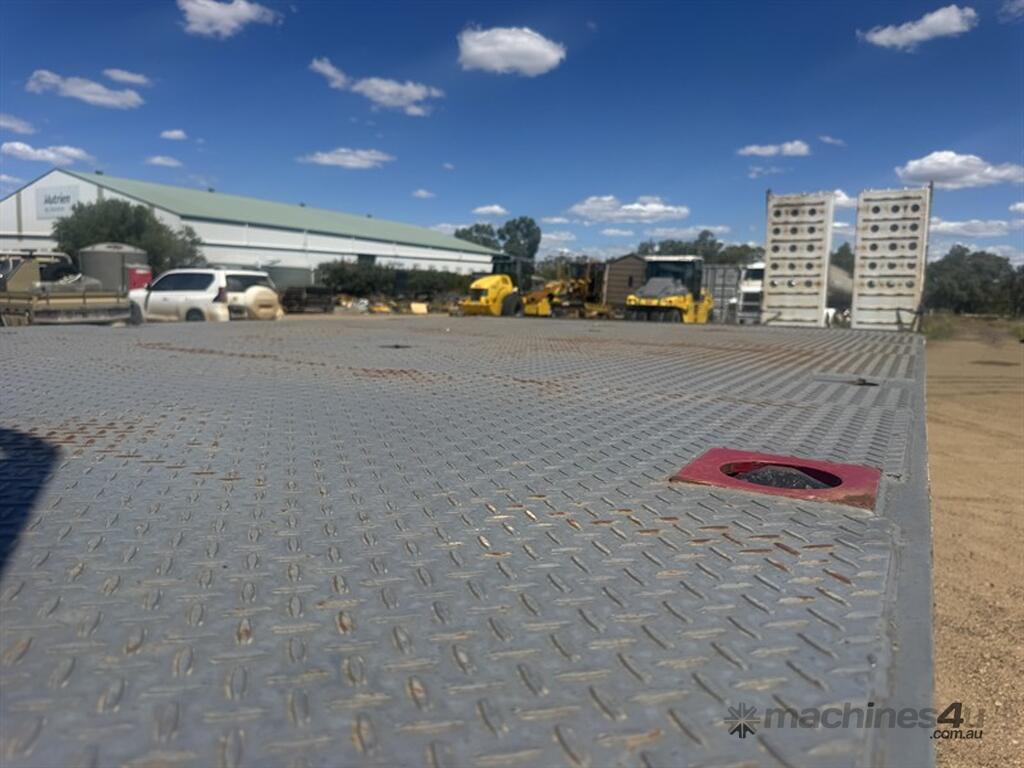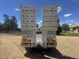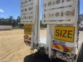 BRIMARCO DROP DECK, DOM 06/22, 13594mm long x 2490mm wide , 4040 mm top deck , 9295 mm bottom deck, Lead trailer , extra wide bifold ramps ,(1m) 4 x tool box s/steel , 5 mm chequer plate flooring, 6 x Chrome armoury rims (Outside) Deck Tie Downs Upper Deck 12, Lower Deck, Oversize, long vehicle, roadtrain combo signs, Rear beacon, 285/70R 19.5 Tyres, ATM:44 tonne GTM:25 tonne, airbags ,check attachements for further details , Located at Moree