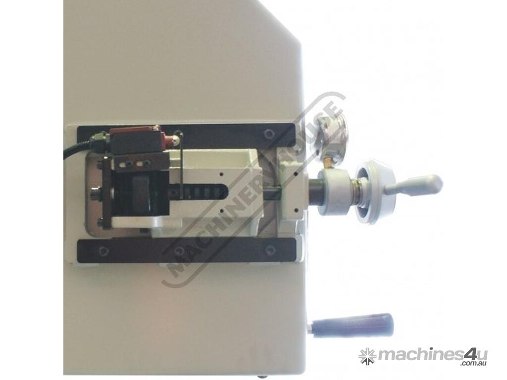 The cutting operation works automatically with the weight of the head providing the cutting force and a limit switch shutting the machine down when the cut is complete and automatically returning to set height position. The weight of the head is counter balanced by an adjustable hydraulic damper to control the feed rate, an excellent machine choice for maintenance shops, steel fabrications, and industrial engineering workshops. If you're looking for this size range of machine, you'll have a tough time finding a better metal-cutting band saw with these features and at this price, It represents excellent value.