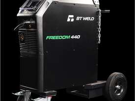 The BT Weld FREEDOM 440 Compact is a high-powered 415V multi-process welder, built for heavy-duty industrial applications requiring MIG, Stick (MMA), and Lift-TIG welding. With a 440A output, this machine delivers exceptional arc stability, efficiency, and weld quality, making it an ideal choice for fabricators, manufacturing professionals, and large-scale welding projects.