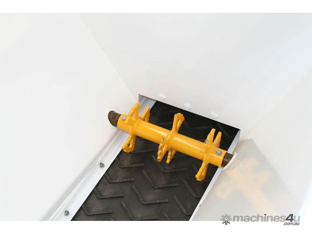 The 1.5m3 hopper is fitted standard with a removable hungry board on one side to assist in smaller loaders in filling the unit.