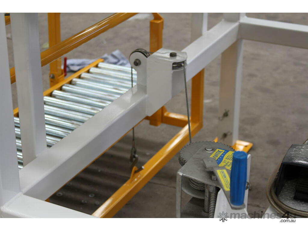 The ergonomically designed height adjustable front load out roller conveyor enables the operator to adjust the working height of the machine to suit their individual requirements.