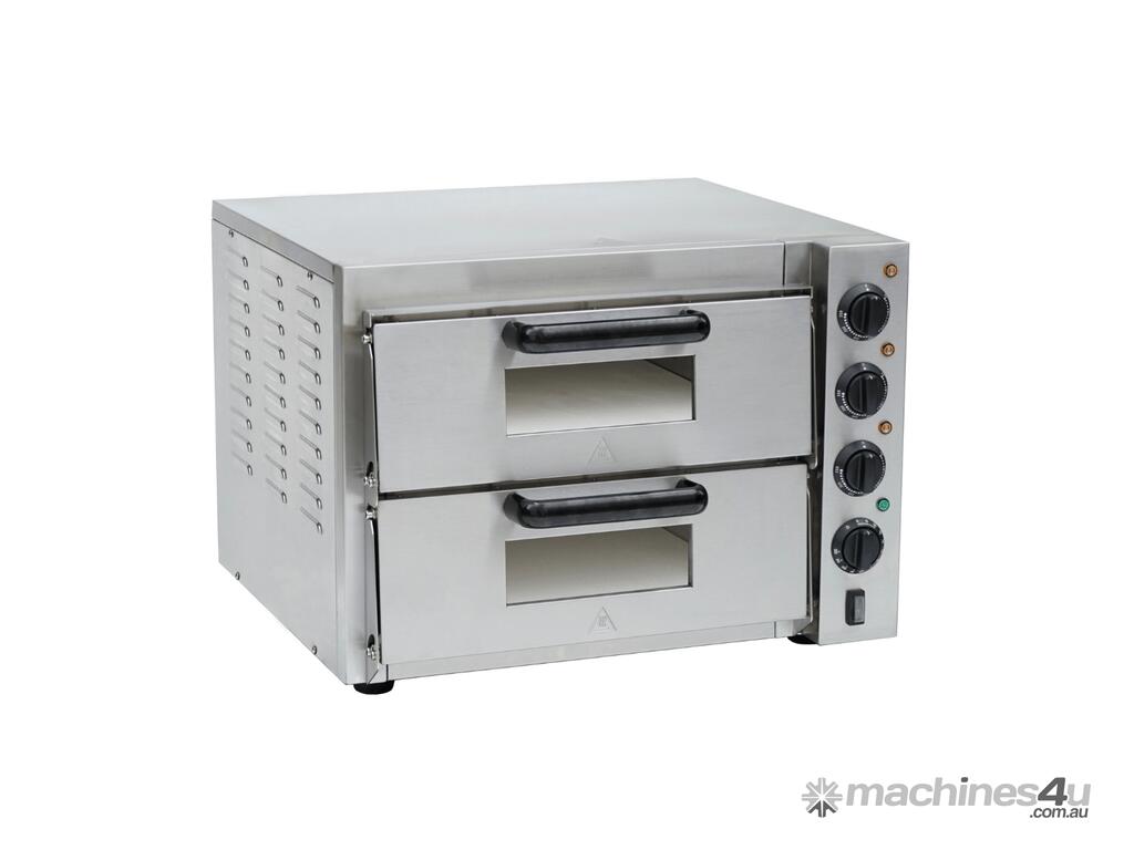 BakerMax Compact Countertop Double Deck Electric Pizza Oven - EP-2T Key Features Stainless steel structure Comes with a ceramic hearth in the cavity Cavity Size 410x420x120mm Stone Size 400x400mm Compact size for small kitchens Temperature range: 50-350°C 60 minutes timer with bell Analogue temperature control Temperature Reach Indication light Viewing window Internal lighting Efficient drop-down door design Rubber foot Bakelite handle 2 Years Parts and Labour Warranty Depth: 561 mm | Width: 580 mm | Height: 435 mm | Power: 240V, 2.4kW/10A | Net Weight: 33 | Price: $1090 | Manufacturer: Baker Max | Warranty: 2 Years Parts and Labour Warranty