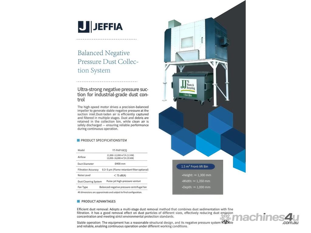 Can be paired with a briquetting or compacting unit to support closed-loop dust handling and reduce workshop dust levels. Final specifications may vary depending on selected configuration.