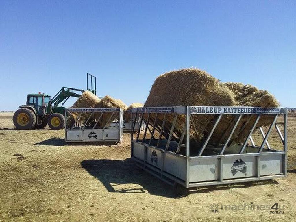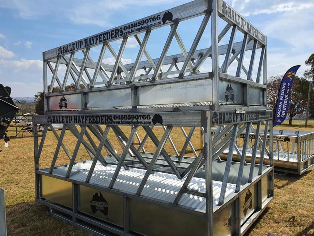 The standard Bale Up Hayfeeder is designed to hold one or two round bales or a single square bale. It can easily accommodate an 8x4x4 big bale or two 5-foot round bales.