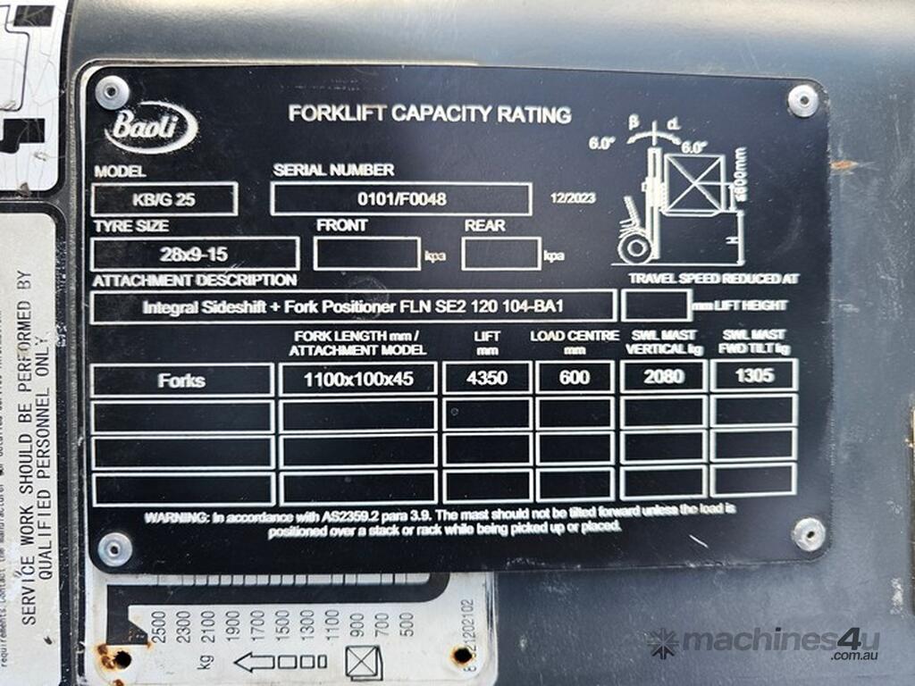 Baoli KBG25 Forklift :      $15,455 AUD($17,000 Inc. GST)