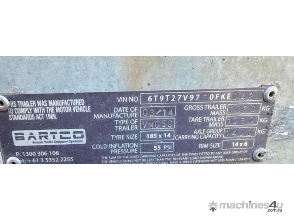 2014 Bartco VMC5C Variable Message Sign Trailer - Length/Size: 2800mm L x 2000mm W x 2600mm H