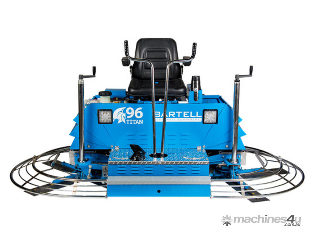 Well respected for its power and torque in a sleek, low-profile design. TheTitan 96 8-foot rider delivers an incredibly smooth finish while providing optimum operator comfort. Lower profile design gives the operator a better feel and sightline of the slab. Blade speeds of 180 RPM can be reached with this machine and it comes standard with Dual Position Steering.