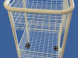 The trolley is equipped with two separate baskets, offering ample space for a variety of items.