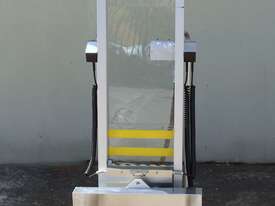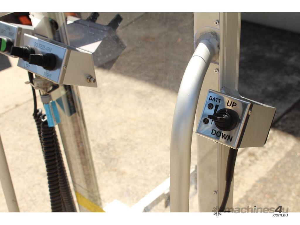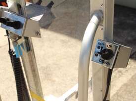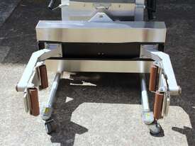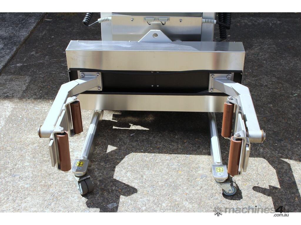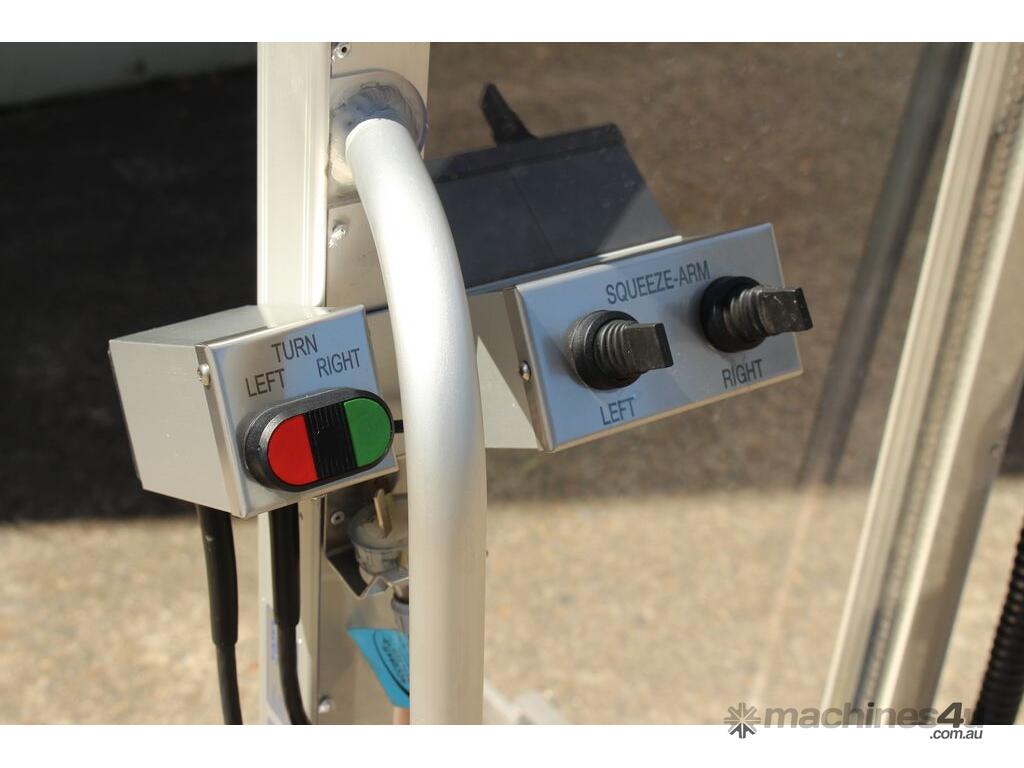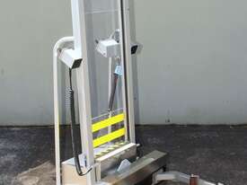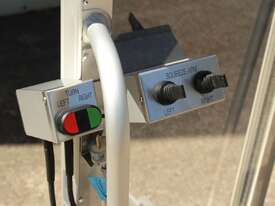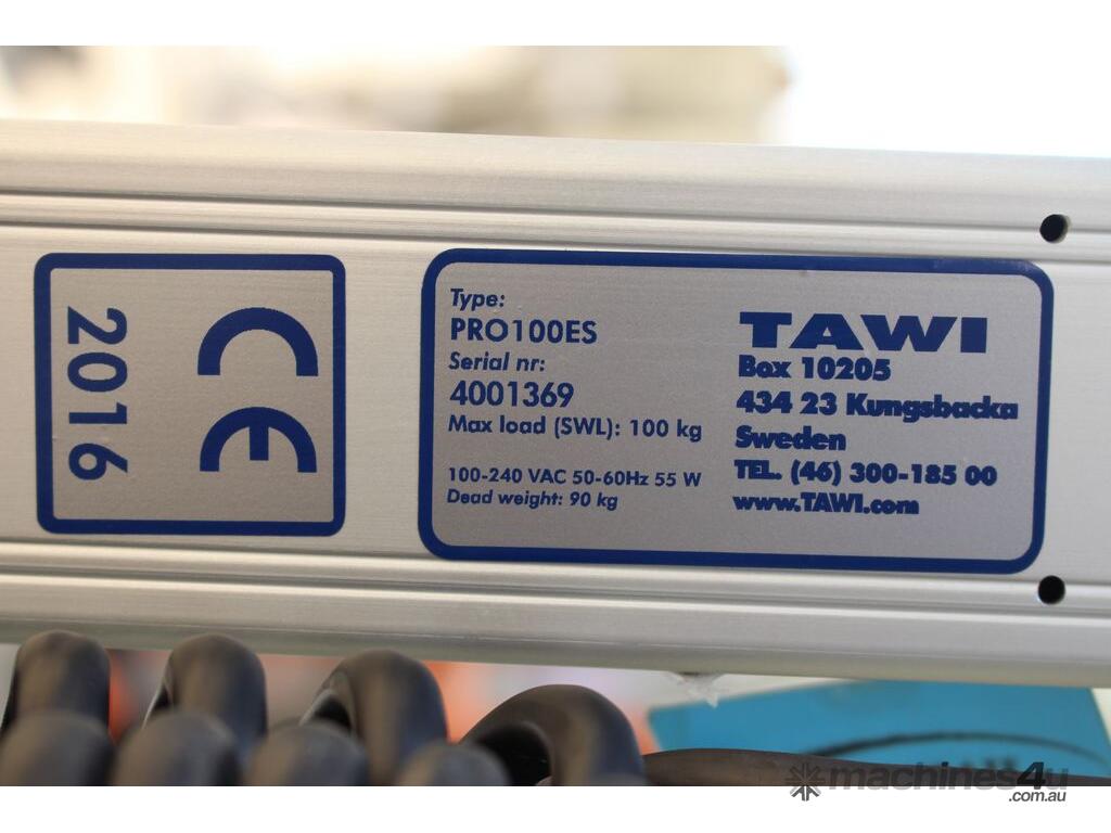 Mobile Drum Lifter, "TAWI" model PRO100ES, max. load capacity 100kgs, designed for handling and lifting small drums, ergonomic stainless steel mobile unit with electric lift and tilt function, suitable for drum transfer and positioning applications in pharmaceutical, food and cleanroom environments, compact and easy to manoeuvre design with safety features for operator control, 240V single phase power supply