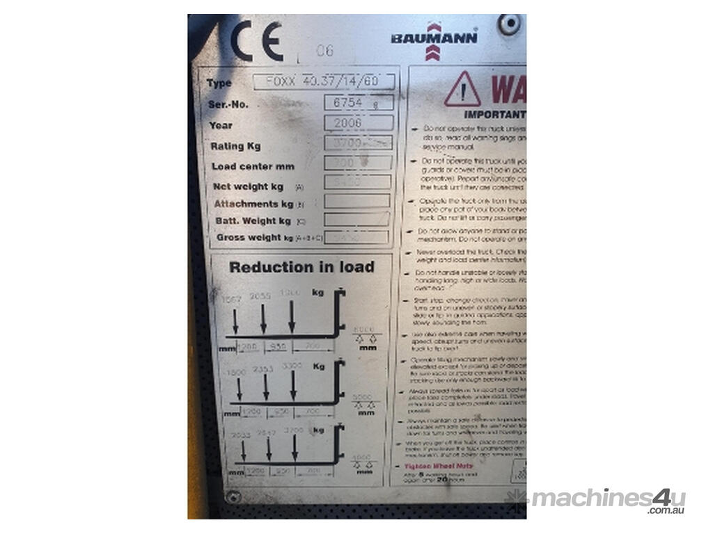 CAPACITY: 3,700kg 700mm Load Centre