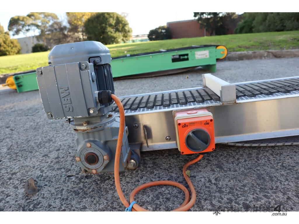 This belt conveyor is in good condition. It comes with the attached 3P motor with on/off control switch